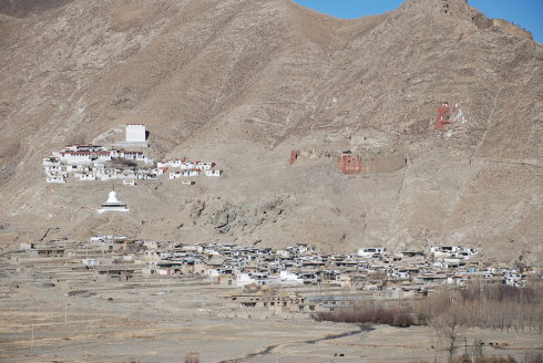 半山腰的寺庙、右边的古迹以及山下的/travel-scenic-spot/mafengwo/62953.html{琼结} 县城,相映成趣