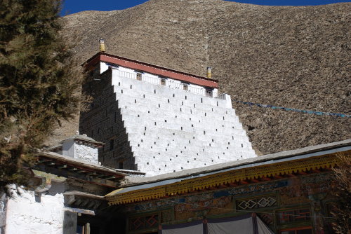 呵呵,揭晓答案,这是寺庙在重大宗教节日用来晒佛的,再通俗点说,就是在那个时候这个上面会挂上一整幅佛的画像,怎么样能想象那会有多么壮观了吧。