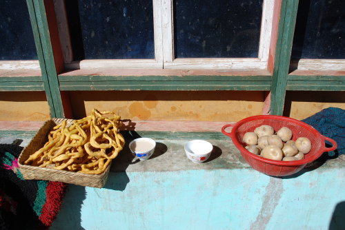 这是招待我们的土豆、酥油茶和油炸小吃,味/travel-scenic-spot/mafengwo/143770.html{道真} 的很好,肯定纯天然