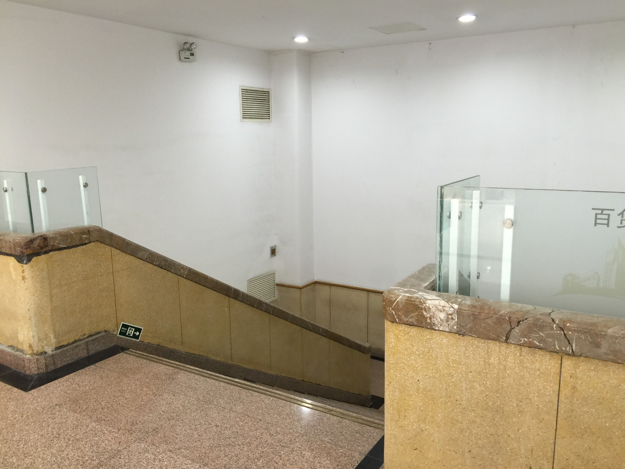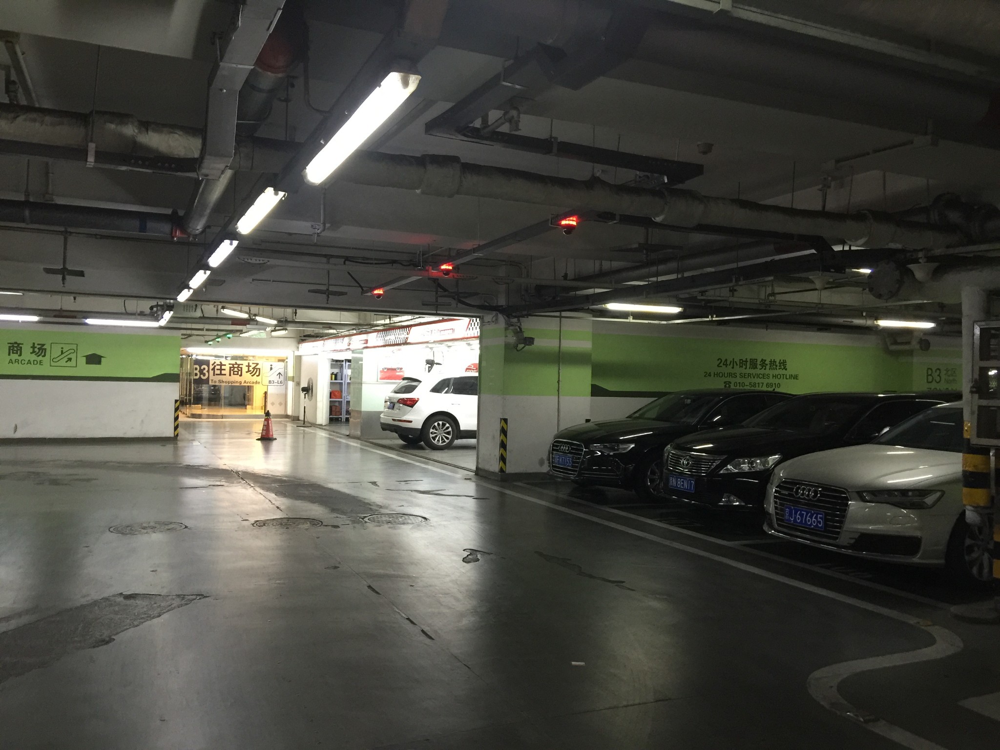 新东安的地库。几年前我来的时候,还没有查找车子的功能。现在有了,这点倒是蛮方便。值得表扬。就是出口有一段儿太窄了,两侧墙,满是痕迹。