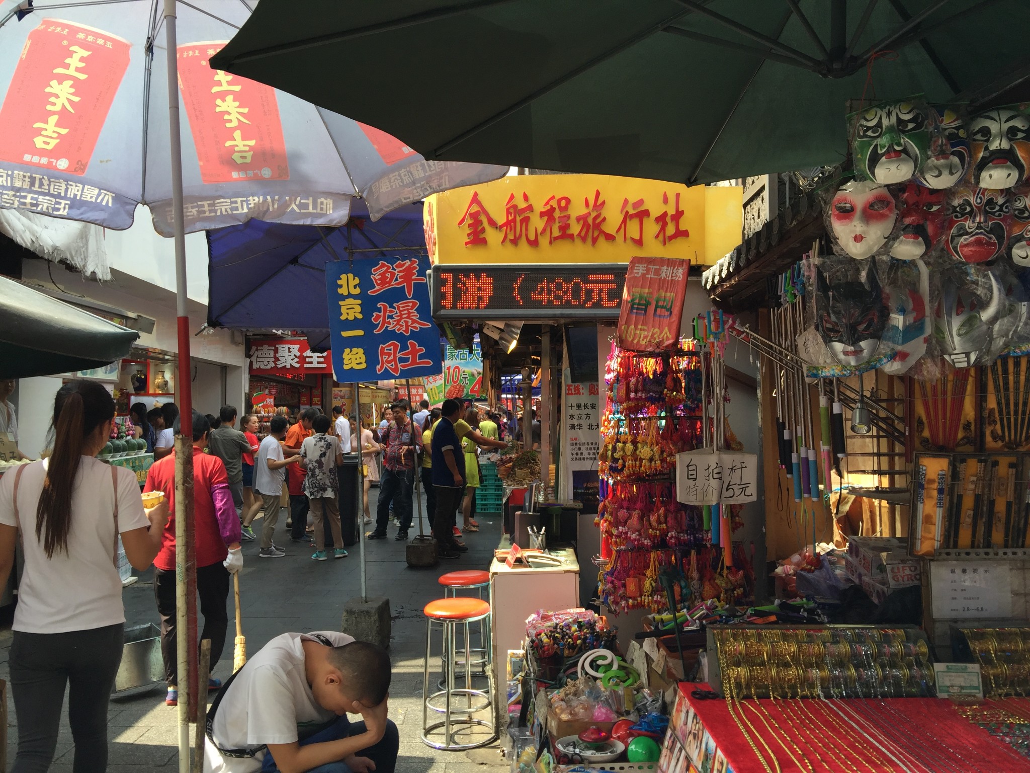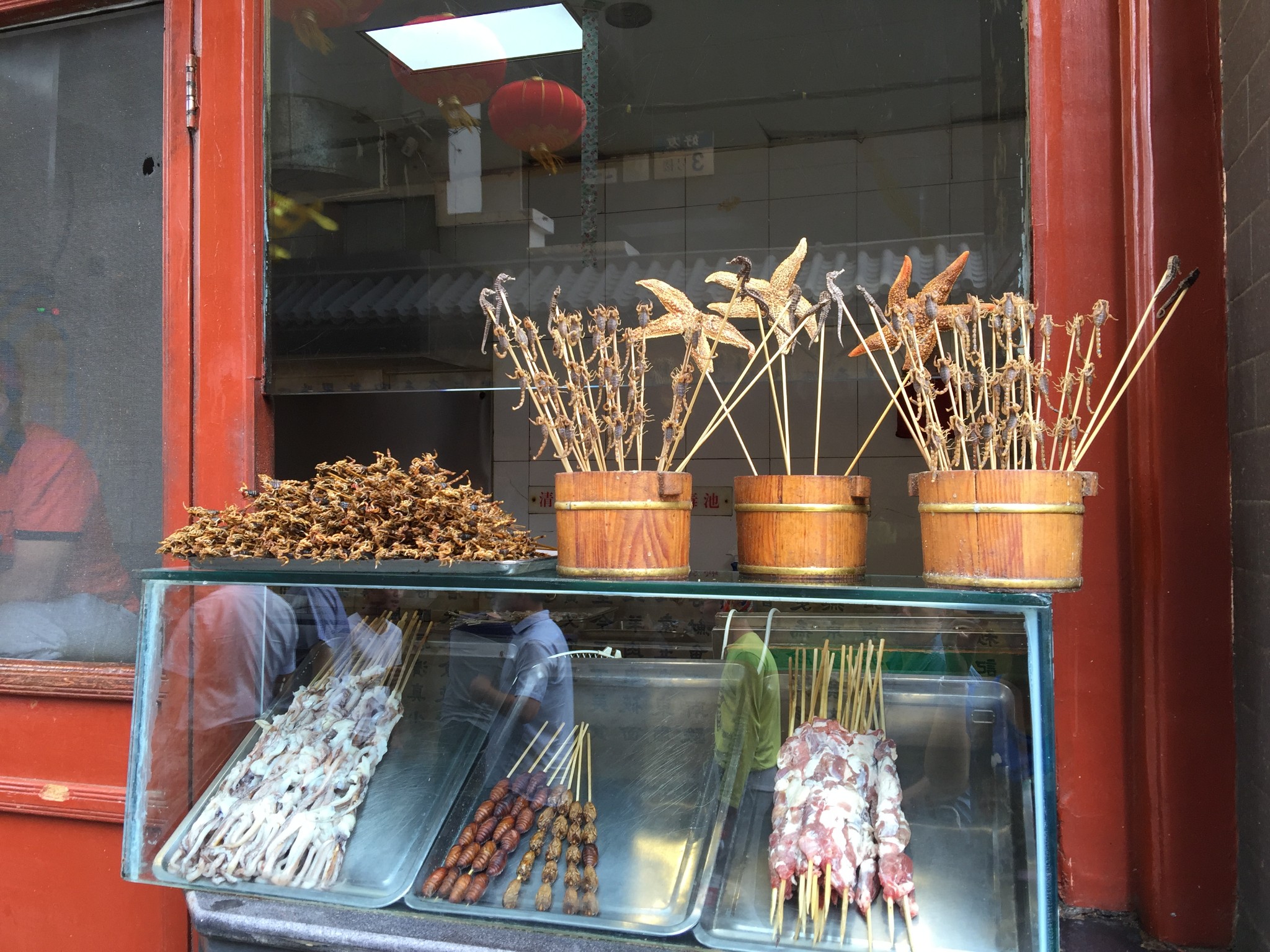 再次重复那句话:“小时候来这里”,那会儿一进来,都是卖羊肉串、鸡肉串、板筋、爆肚儿、羊汤、羊杂、什么的一大长溜儿。还有那位上过电视的会专门老北京吆喝的大爷站边儿上吆喝,怎么如今变得一进来就这么生猛了?????关键那蝎子还是活着的,还有海马也是,活着被串,被下油锅。。。咦~~~~我是怎么也不敢尝试的。都赶上古时候的刑罚了。好歹串儿都是尸体上的肉,是死后的,不是让你等着看着它活着下锅,吃“新鲜”的啊。