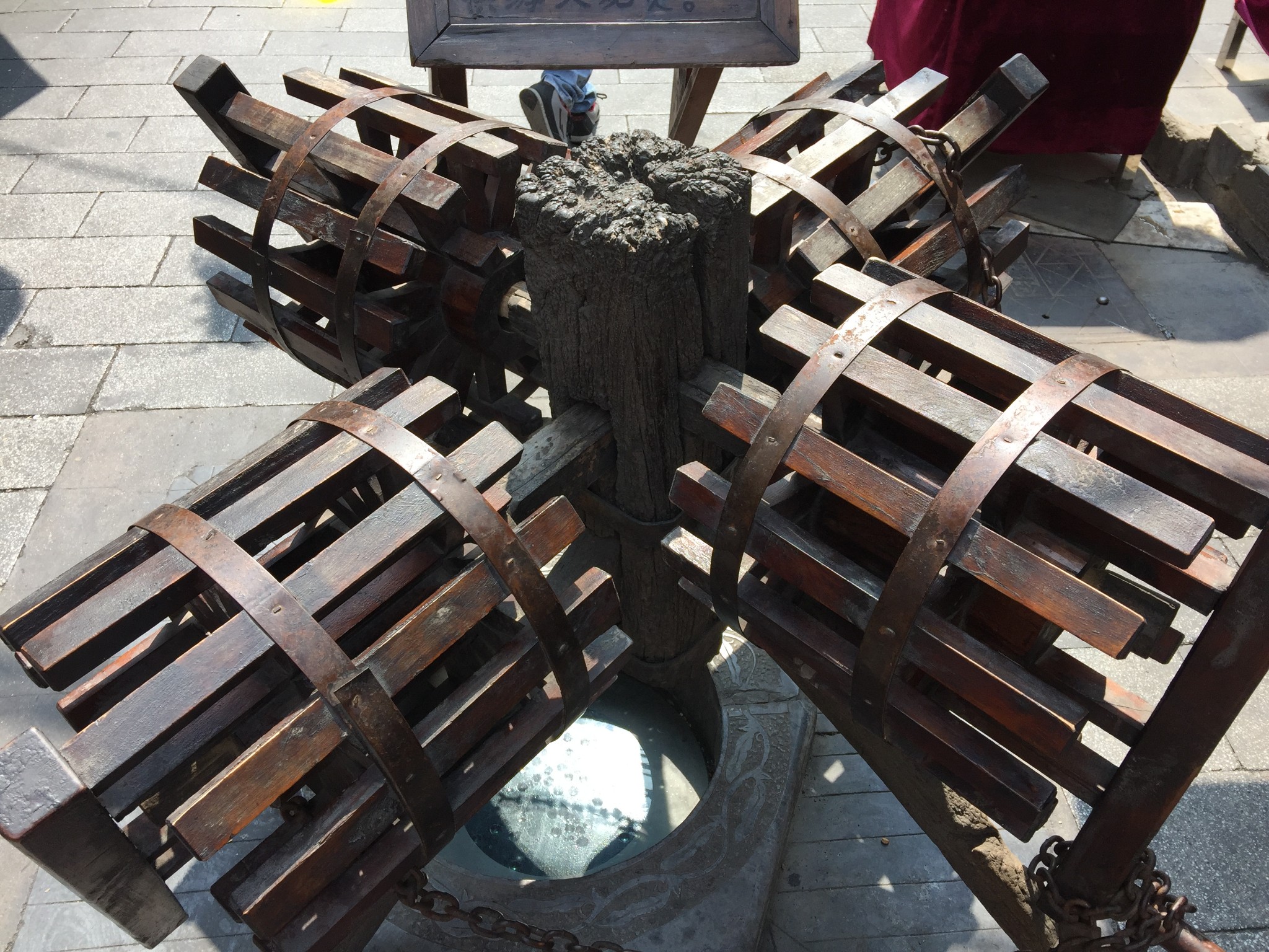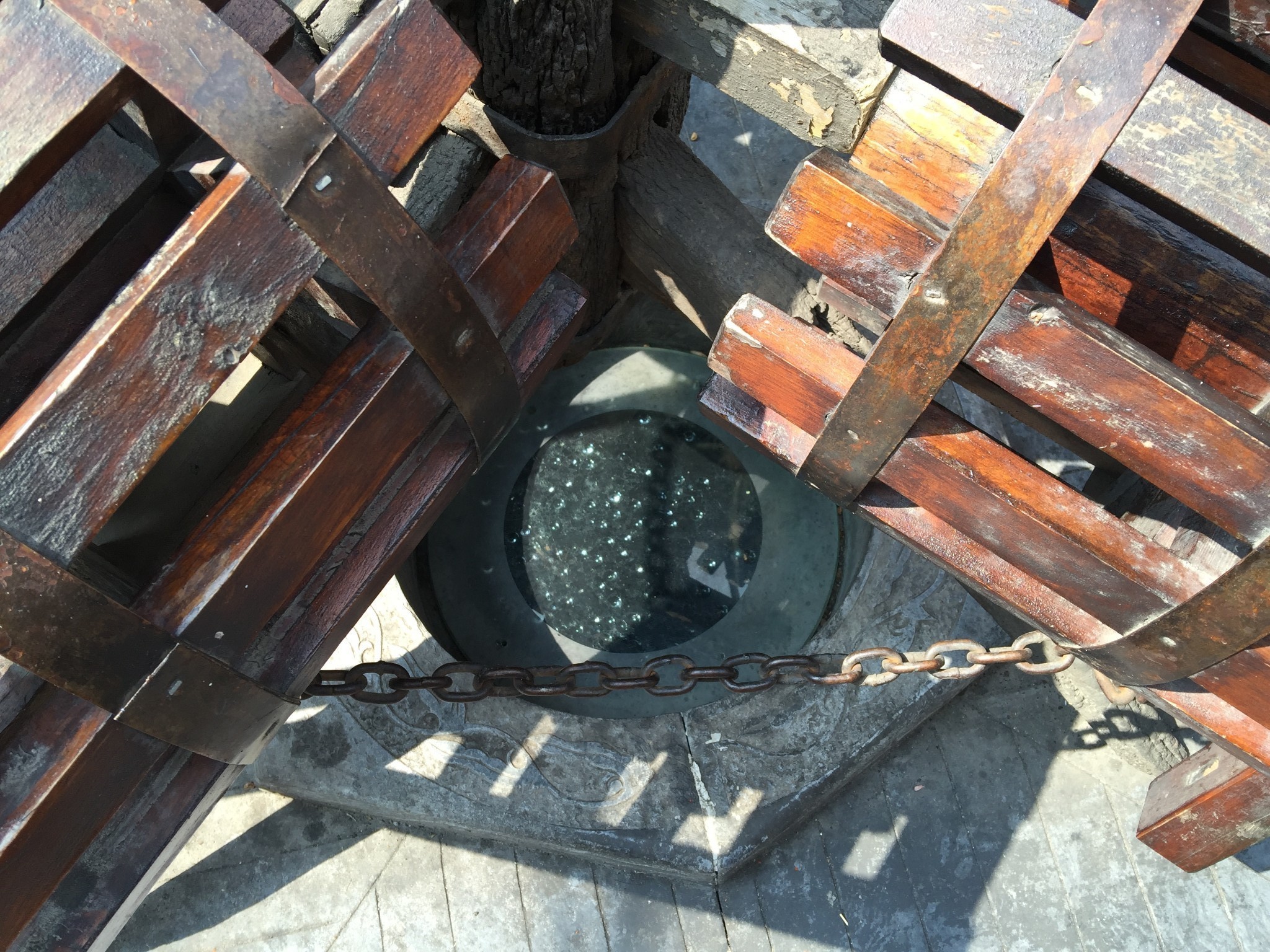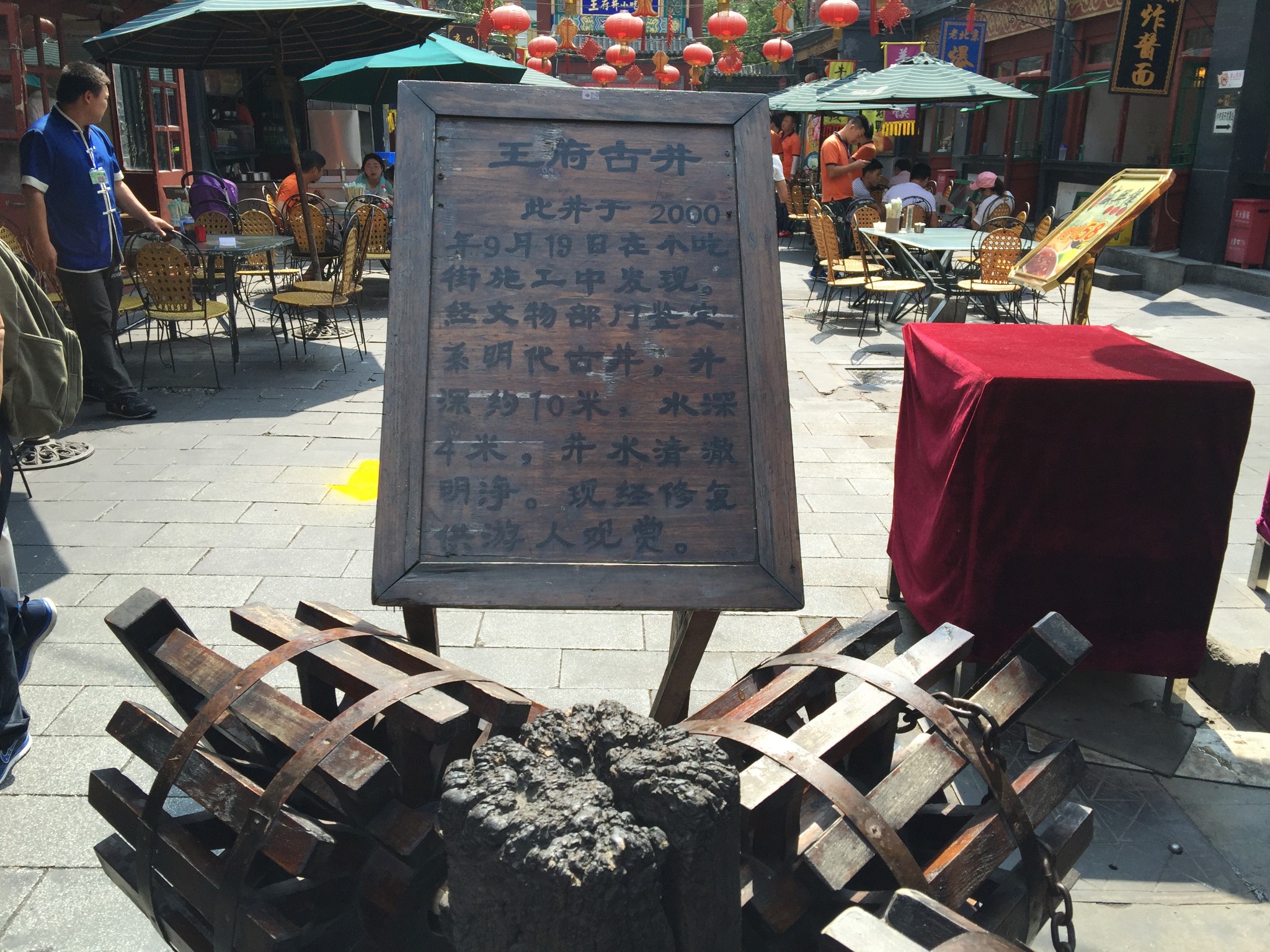 这是一口有历史,却无人问津,无人关注的井。我驻足拍这里的时候,周围的食客不少,但连瞟一眼的待遇都不给它。来这里的人,到底是在看北京的历史,还是在找外地人蒙骗外地人的假北京小吃?不过也对,民以食为天嘛,要先填饱肚子,才能更好的挨骗。