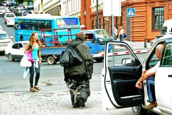 大街上流浪汉挺多,有极少数是坐在路边进行着乞讨,而大多数却是用行动演绎着 “落寞贵族” 的傲娇,同时也在坚持着自己的时尚信仰。