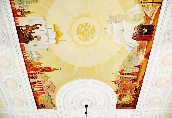 近水楼台先得逛,据说海参崴火车站的天花板壁画还挺华丽,同时这里又作为亚欧铁路之旅的第一站,因此我们慕名而来,怀着崇敬的心情进到了火车站里面。