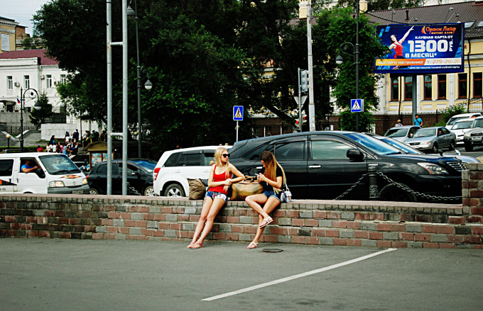 在时下时停的小雨中,我们漫步在海参崴的一条主干道上,看看街景,看看美女,但明显感觉这里的俄罗斯大妞儿跟莫斯科的那些 “名模级美女” 比起来还是差了好几个档次...... 哎,斯拉夫民族太好看了!!!!