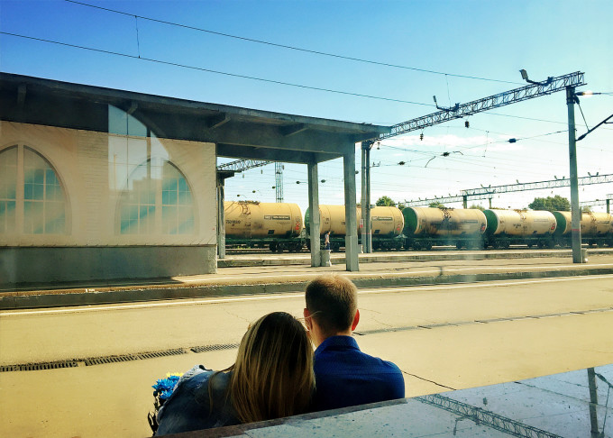 穿过小广场是一座火车站,透过候车大厅窗户看到了暖心的一幕(↓)。然而那时的我俩并不知道,原来这对情侣不算什么,海参崴人民才是实力虐狗的教科书!ಥ_ಥ 相关组图请见游记末尾。