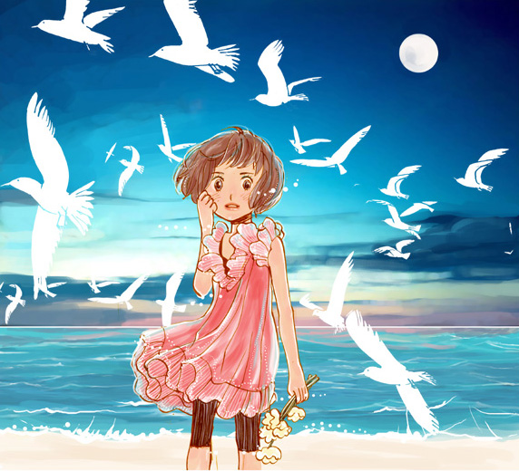 好吧,扯远了,我们来说那个插画的起因,猪乐淘这个名字也许只有看过她的漫画的人才知道吧,当时她是我很喜欢的一个漫画家,她笔下的玛塔系列我每一本都收藏着,原因就是被封面那个成为“雷诺”岛的地中海小岛所吸引。