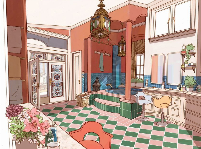 精致的玻璃吊灯,淡淡的橄榄味的香皂气味,