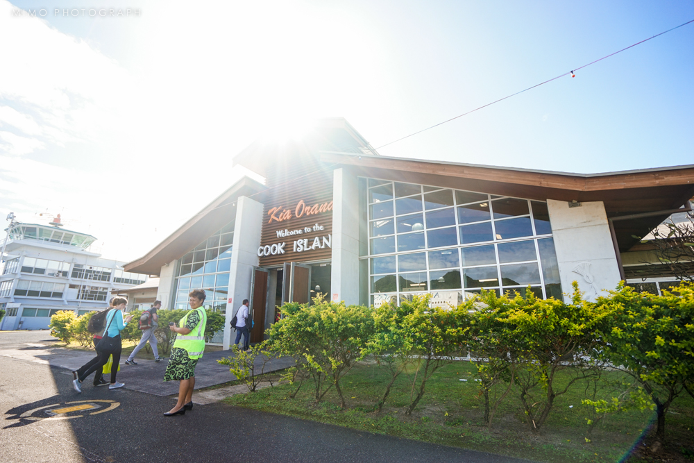从飞机上下来,背面是苍郁茂盛的山脉,这是库克群岛的最高峰曼加山脉,据说在拉罗汤加岛的任何一个地方都能看到它。机场没有廊桥,没有摆渡车,其实也不需要,因为往前走几步就是航站楼,棕红色和白色的楼梯上用一种可爱的字体写着“cook islands”。