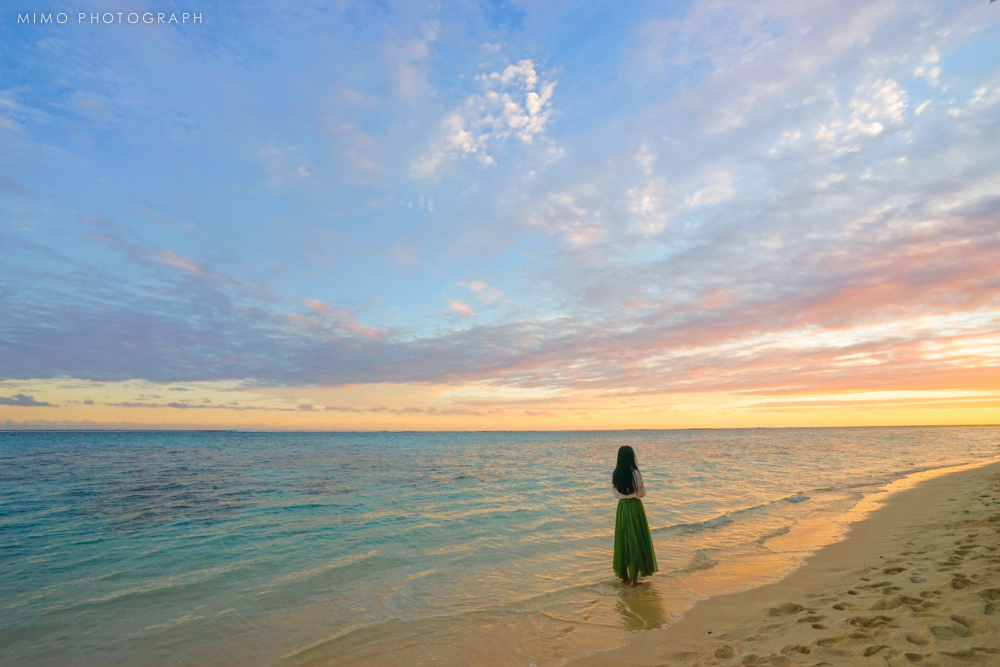 太阳开始落下,海水一半橙黄一半蓝绿,一直觉得海岛最值得欣赏的风景就是天空,无论是澄净的白天,是色彩丰富的朝霞夕阳,是雨后跨越海面的整条彩虹,亦或是深夜的璀璨银河,都是城市里无可媲美的,地球上最原始也最美丽的风景。
