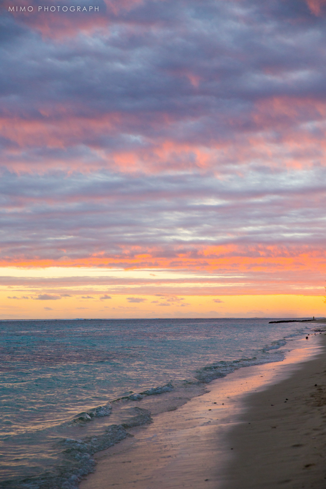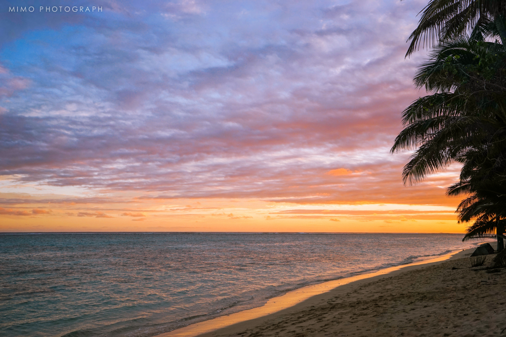 酒店前的这一片连绵细腻的白沙滩叫穆里海滩,是全世界排名第七的沙滩。虽然临着大海,但是并没有咸湿的海风和阵阵的浪声,因为库克所在是一片巨大的潟湖,道的外围被珊瑚礁分割起来,外海的浪拍不进来,流进来的海水就像湖水一样平静,但又清澈明净。