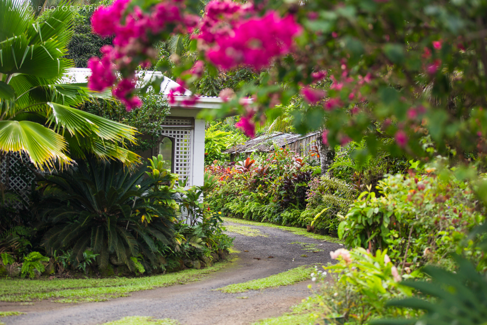 Lydia一身桃红色大花裙,扭着24寸箱子一般大的屁股,头戴一个鲜花编织的花环笑意盈盈地给我们挂上一串香气四溢的花环。Lydia有着魔力的笑声,让人由衷感到开心,从机场走到,她一路上给我们介绍了不少朋友,我甚至怀疑,这个岛上每个人都互相认识。