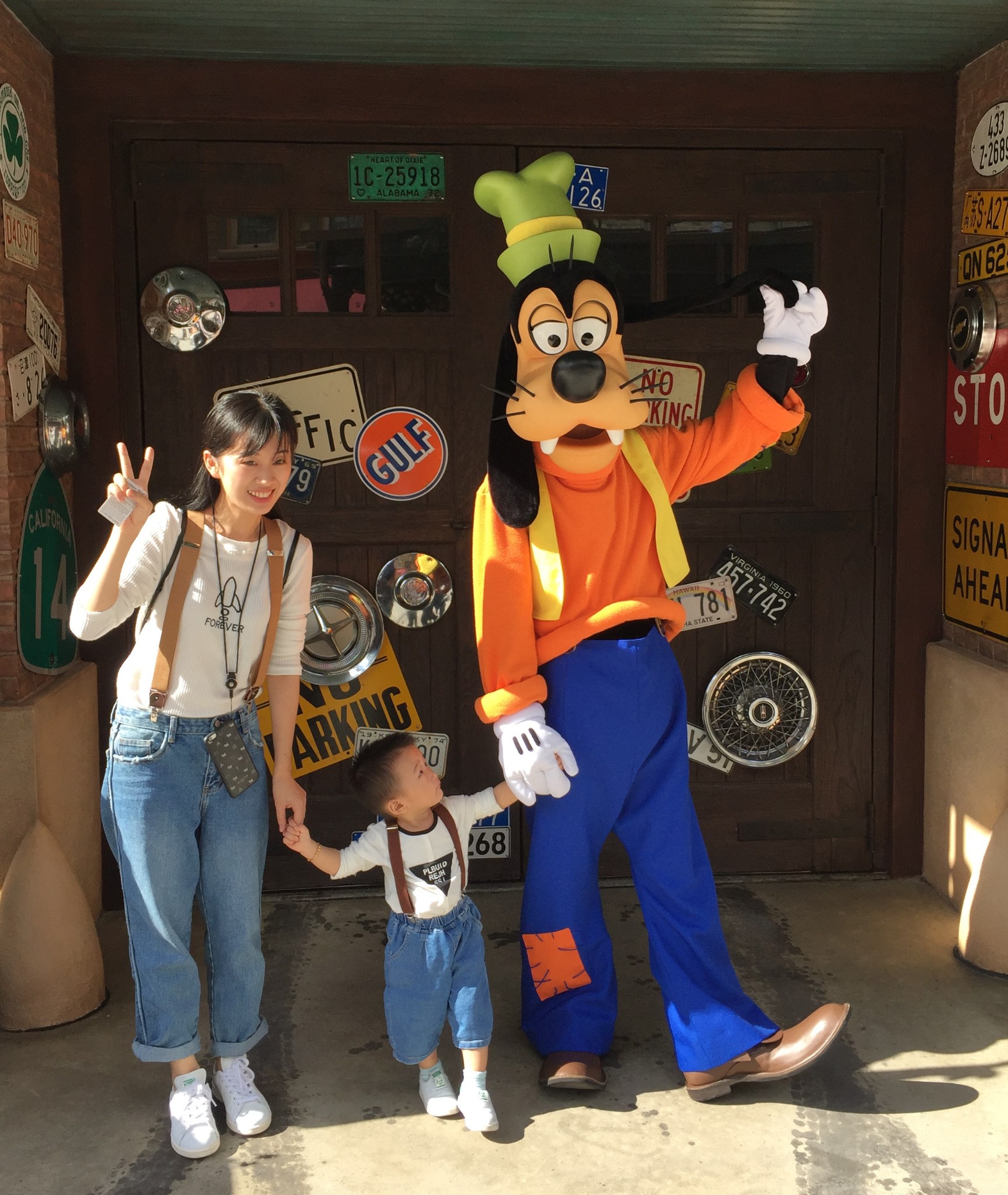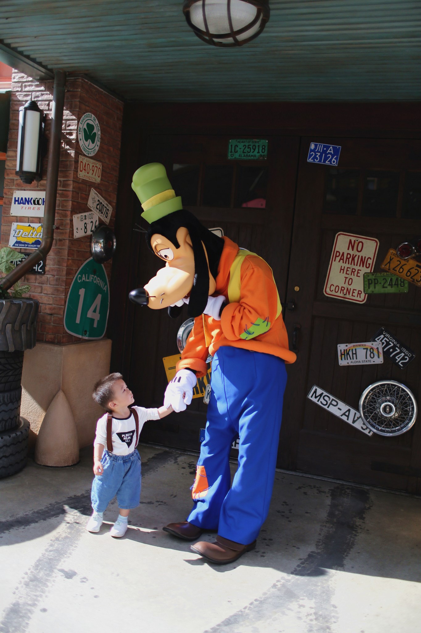 由于我自己有迪士尼情结,所以肉肉在很小的时候就认识米奇、唐老鸭、高飞狗,这次看见“活“的了,他好开心。