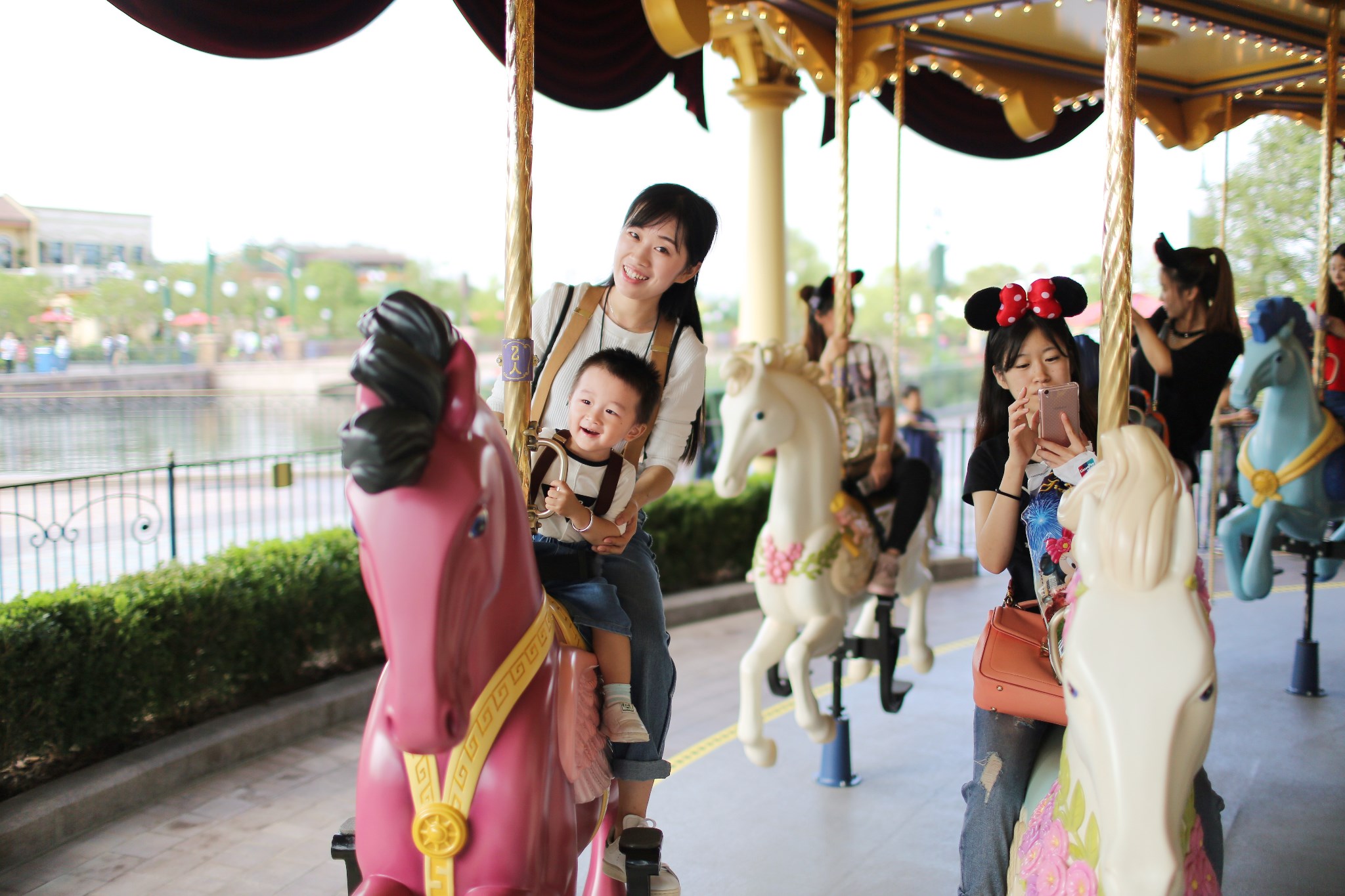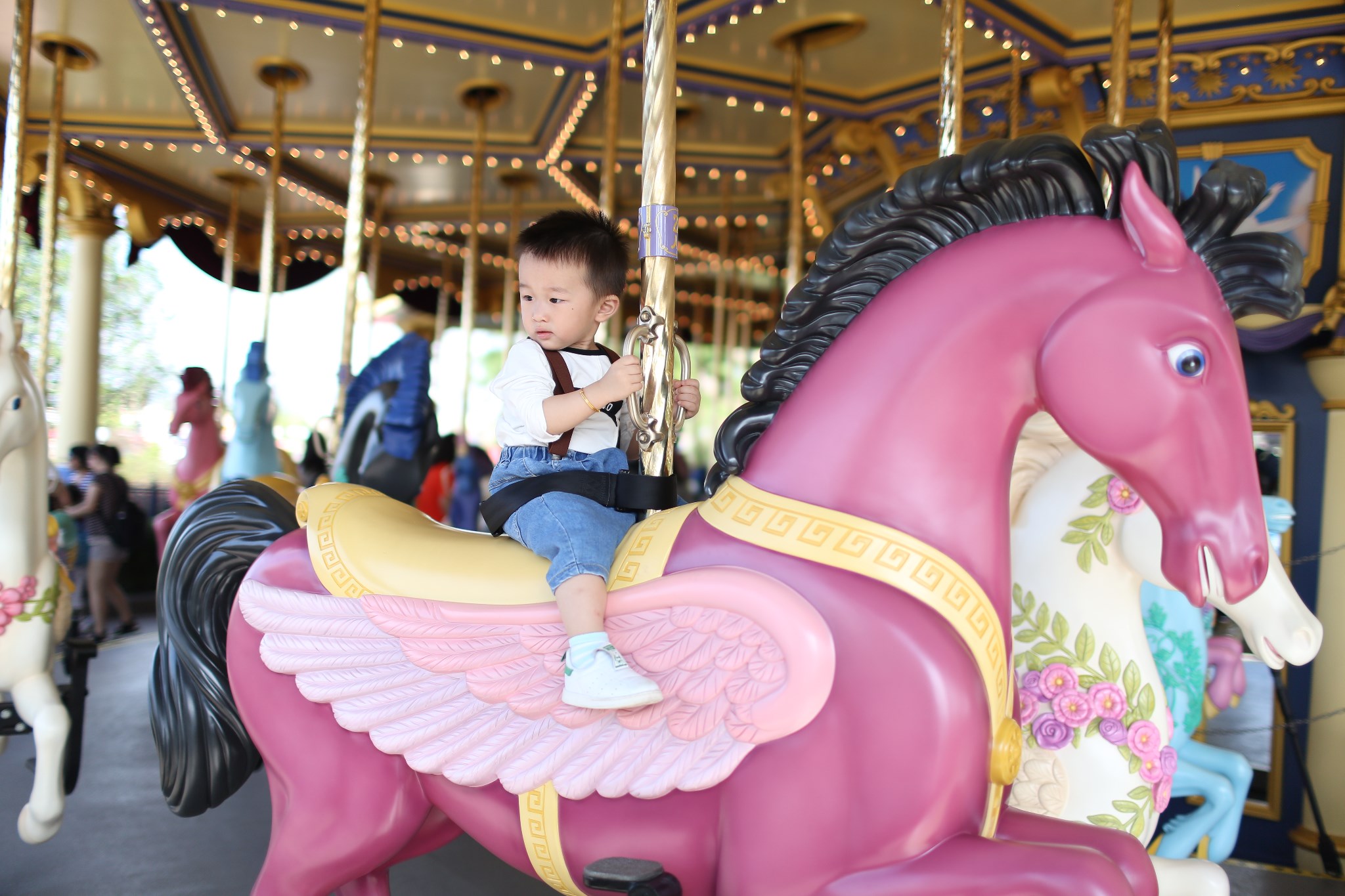 旋转木马就在大门的不远处,知道肉肉能玩的项目不多,所以看见什么就玩什么吧。