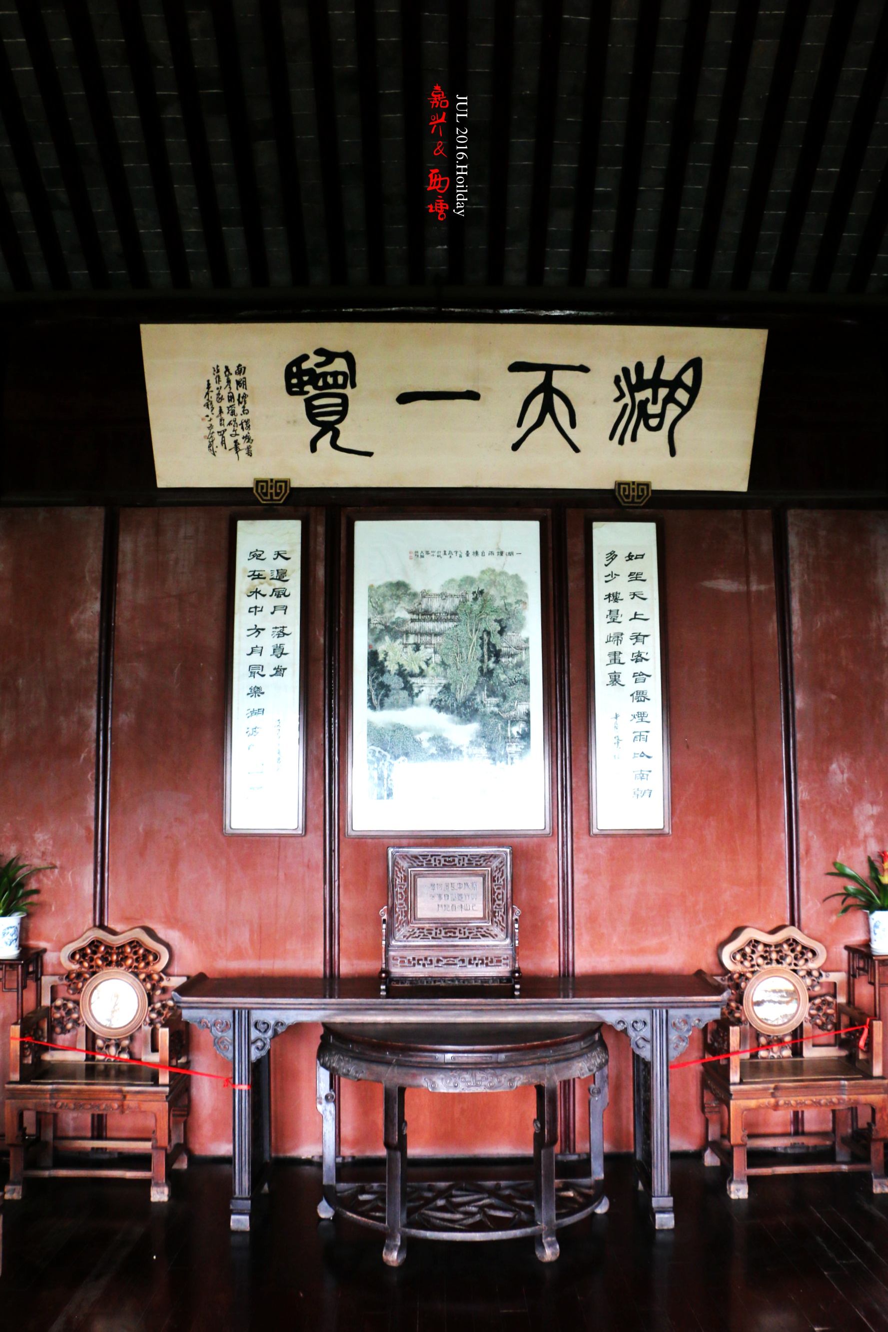 五分钟的航程,下船登岛。湖心岛不大,绕一圈也不过三五分钟。烟雨楼周边最多的,都是些名人遗迹,笔墨山水。