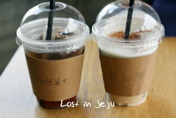 渴了进家小店喝一杯Peach Black和卡布(9000韩元),小店对面是一间带粉墙的房子以及一长条蓝色围栏,作起来简直不像话。