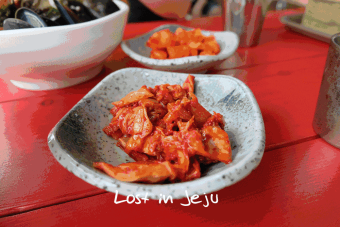 三个小时真的没想象中那么久,一晃就过去了,我们不过才骑到第一个灯塔而已,天空开始变暗又流了几滴泪,便启程往回走,刚好肚子也饿了,于是随意挑了家路边人比较多的一家店,味道竟然也很不错,鲍鱼泡面、海螺粥吃到撑(21000韩元)。这家店应该是一路上生意最好的店了,只卖5款产品,那一碗满满地海鲜其实底下是汤很鲜的泡面,海螺粥一开始吃觉得有些重口味,等适应了之后就光盘了。