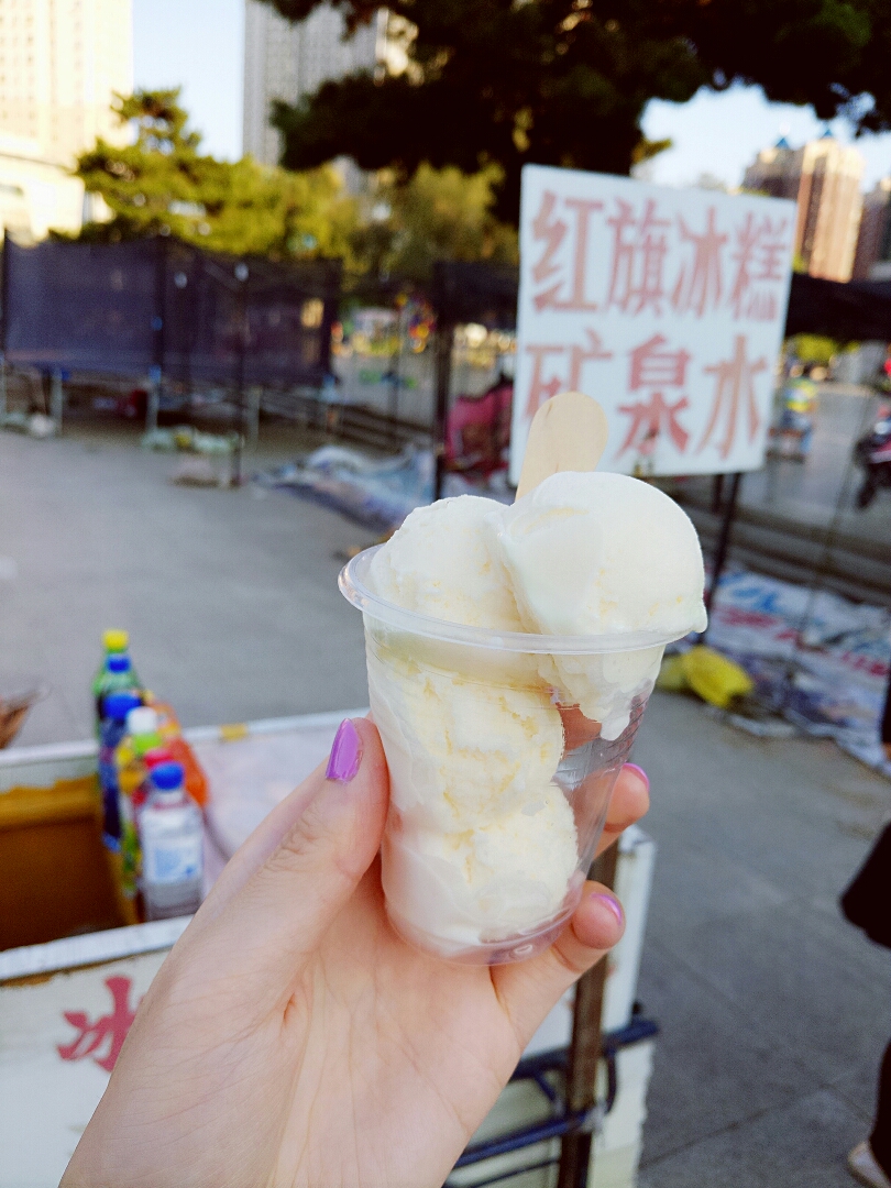 这趟全程都是用信用住预定的如家快捷,办理入住和退房都很快捷,免押金,免查房,离店蚂蚁花呗自动扣款,无需等待结账。到酒店扔了行李就在吉林站的公交枢纽坐3路车过了吉林大桥去松花江瞅瞅,江水冰凉清澈真不赖!还误打误撞的在路边摊吃了几球红旗冰糕,好吧,我承认之前真没听说过红旗冰糕,就好比在北京得吃北冰洋双棍。