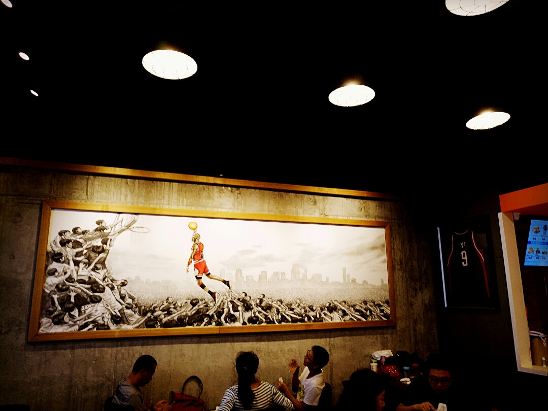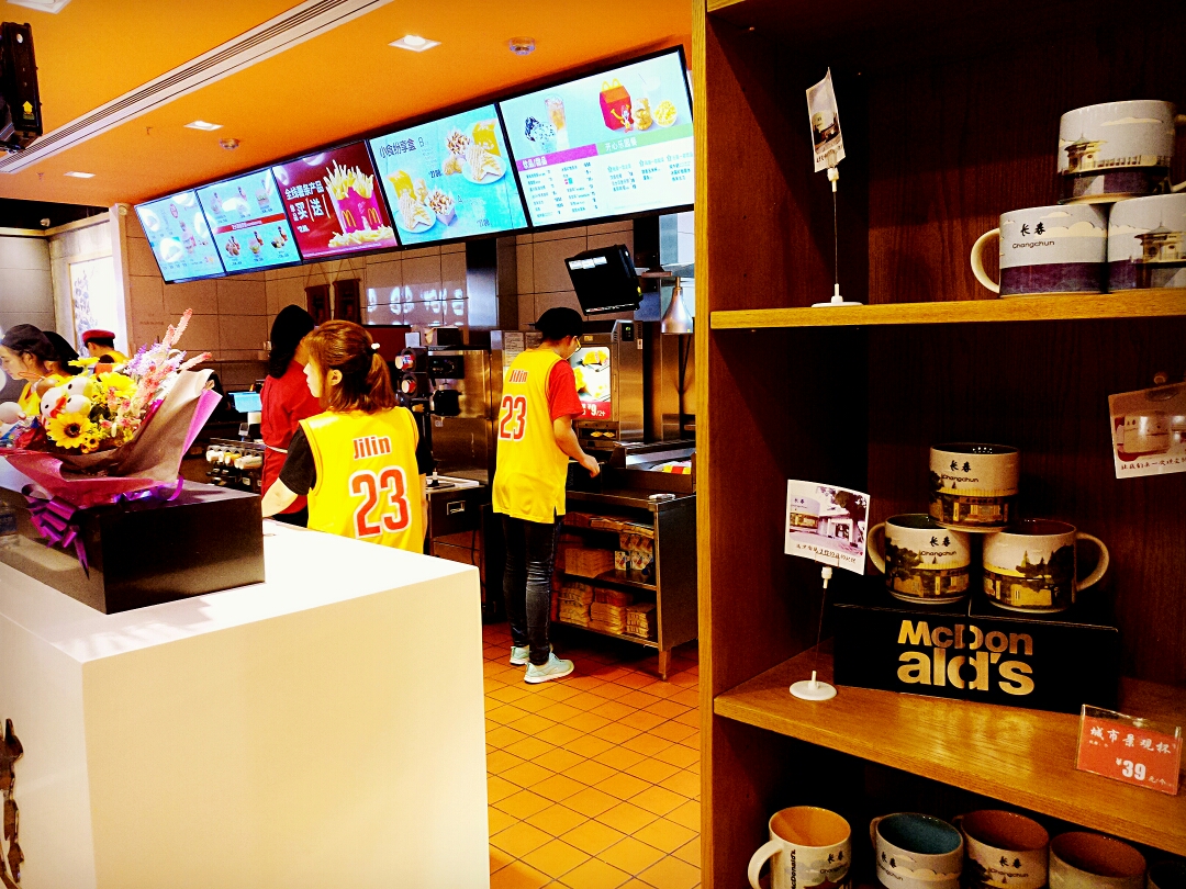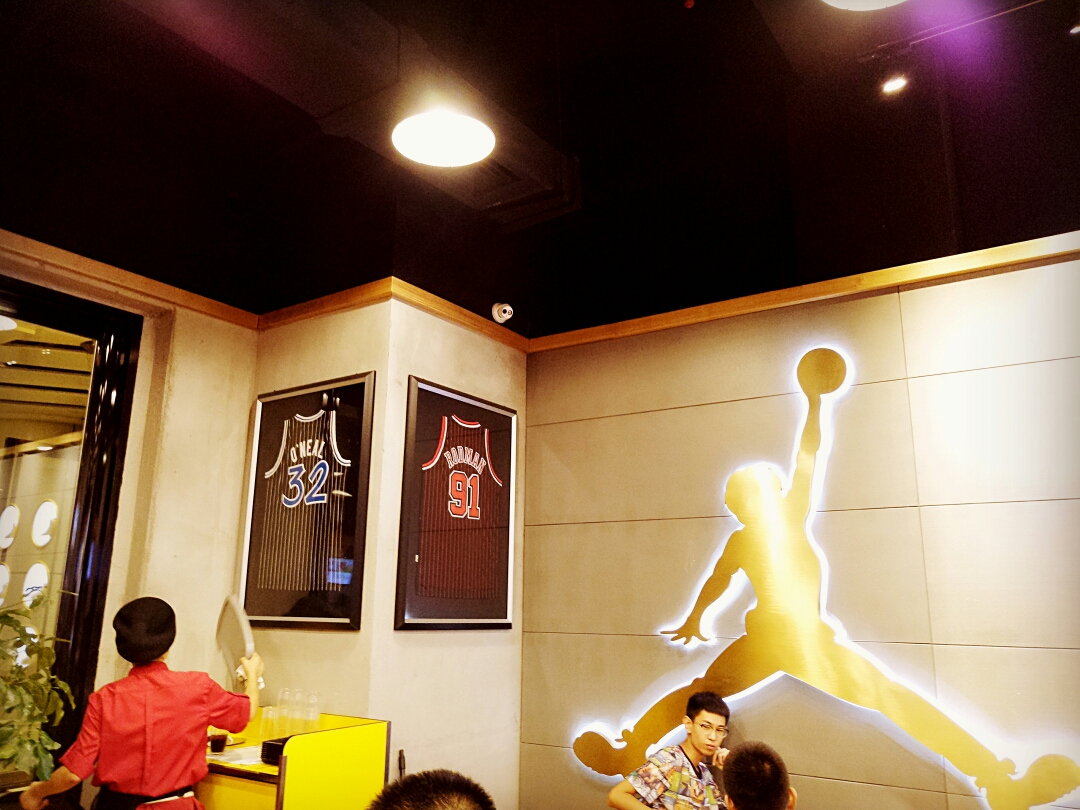在江边的世纪广场发现一家篮球主题的麦当劳蕾凯莲店,店里有30款乔丹珍藏球鞋,球星签名球衣,地面也是篮球场地,店员穿23号jilin篮球服,电视里放灌篮高手。这都不算什么!这家店的可乐是专属杯装,不提供吸管降低逼格,几乎人手一杯可乐,出来还有汽车版的甜品站!虽然对篮球运动不感兴趣,但也乖乖坐下来感受一把这么牛逼的麦当劳!临走的时候还以为这辈子再也不会来这家店了,结果后来因为临时改变行程,又来吃了两次!