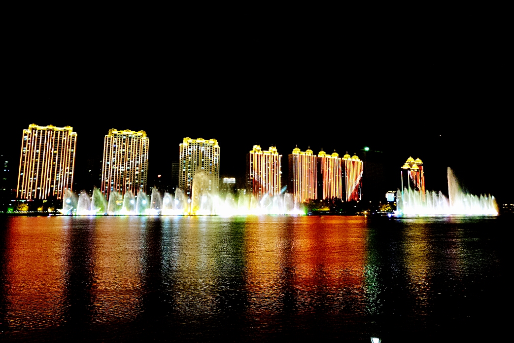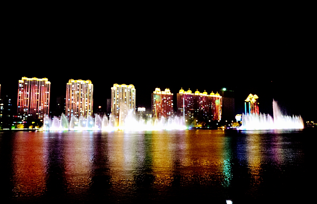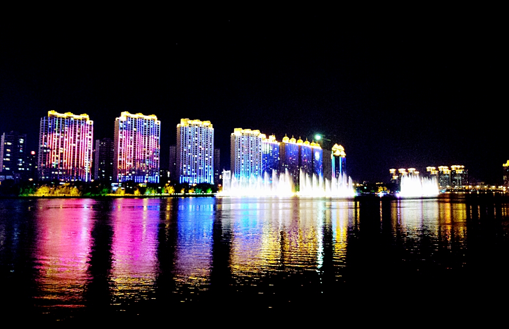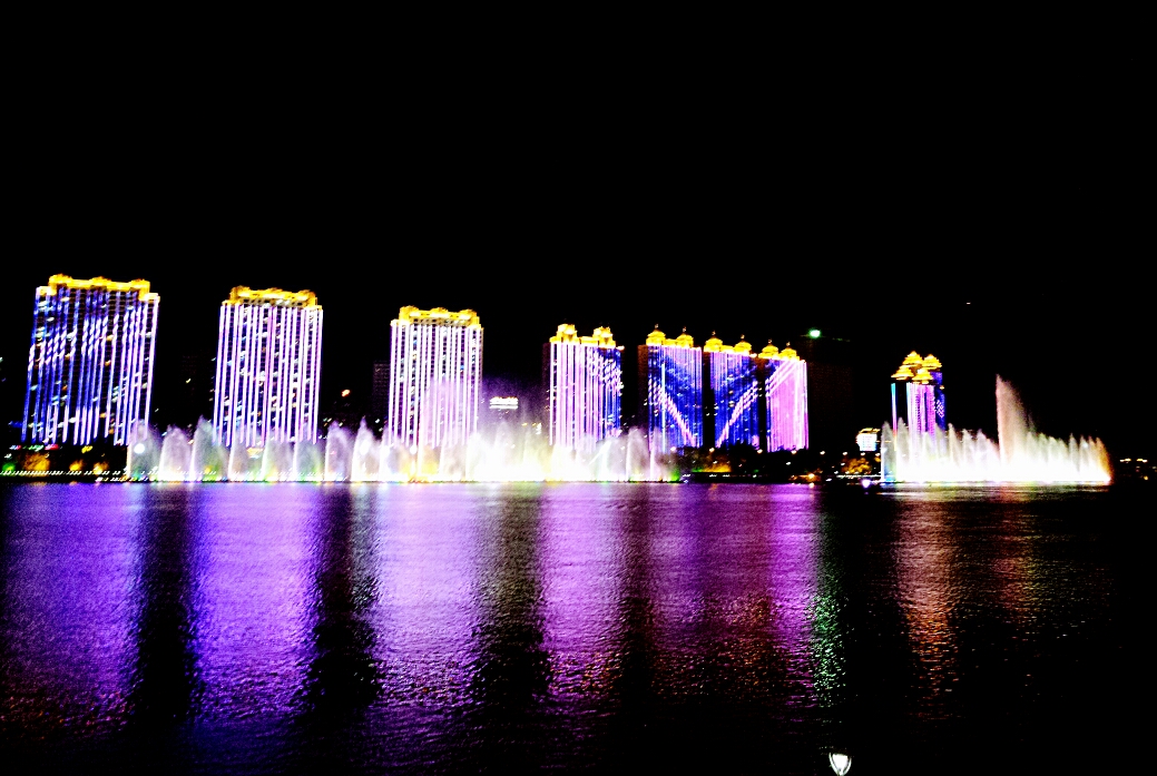 天黑坐上公交返程,车子在吉林大桥上开的时候看见刚才去的江边居然有喷泉灯光秀,又赶紧下车跑回来江边看喷泉,说实话这亮化工程做的很不错了!比无聊的幻彩咏香江还耐看点呢!还不用人挤人!