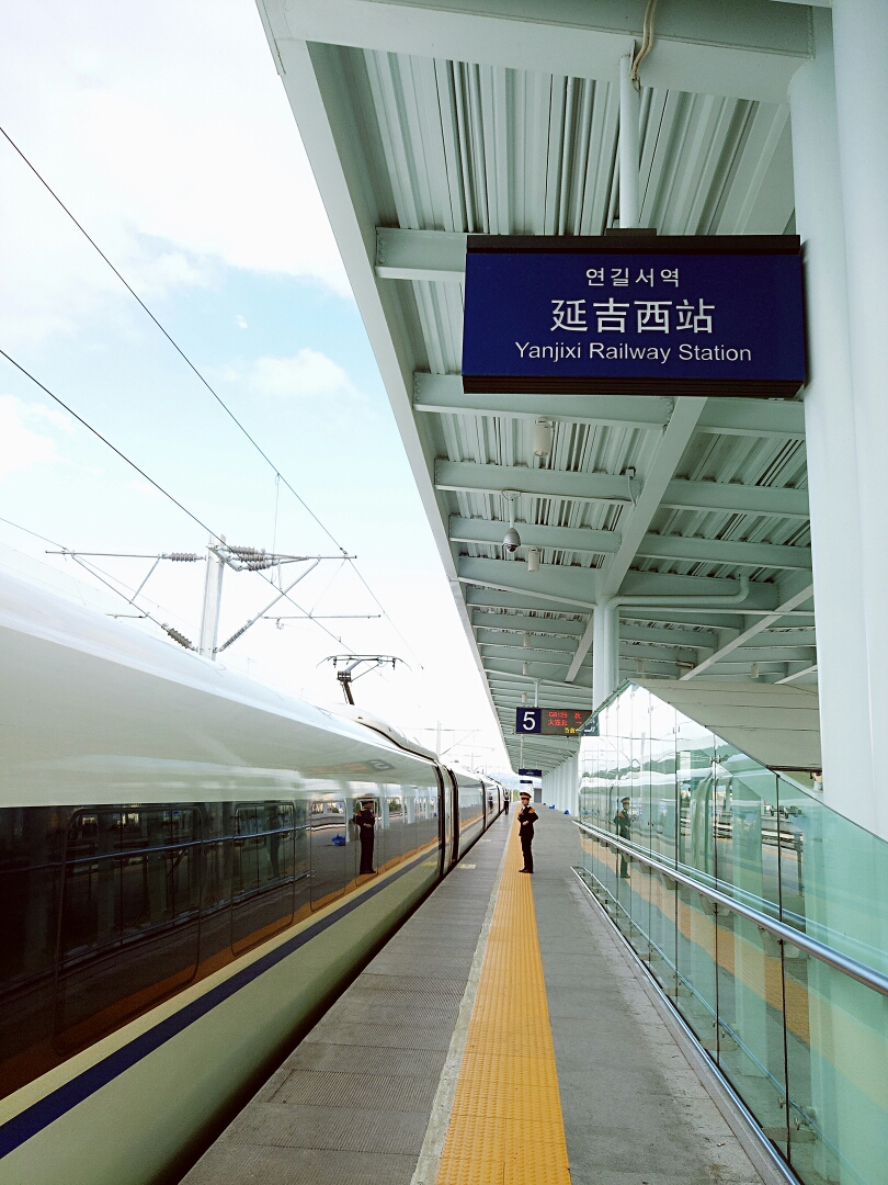 坐上吉林到延吉的高铁就开始了无止境的穿山洞模式,这条路线修高铁真是不容易哪!长珲线售票有G(高 铁),D(动车),C(城际)三种可选,价格一样,不过G车体密闭性最佳,在一路无止境的穿山洞时耳膜不适感也是最低的,时间合适的情况下,推荐坐此车体。感谢好天气,除了钻山洞,一路还有蓝天白云童话里的小房子相伴!说最美高铁不为过吧!