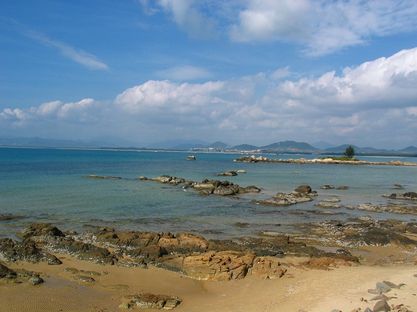 这还是那第三处沙滩,图片上尽头那个伸入海中的小山头叫“王八头”。