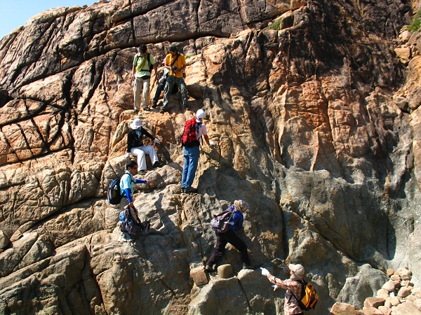 这一处的岩壁很漂亮,不知道是风化是海蚀还是火山岩地貌,反正很神奇。