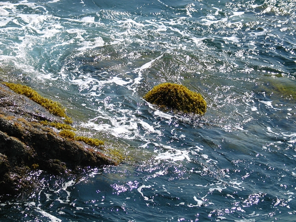 淹在海里的长满海草的礁岩,犹如绿洲。