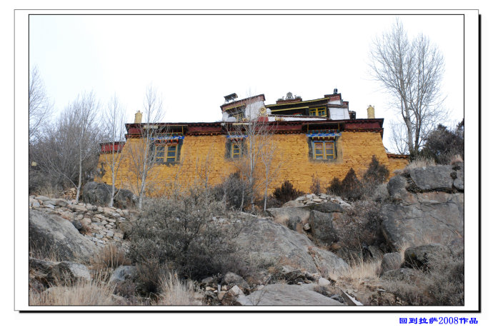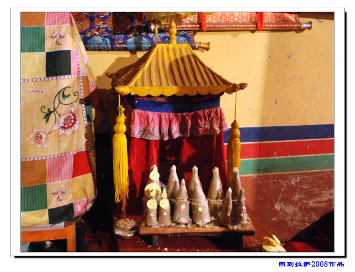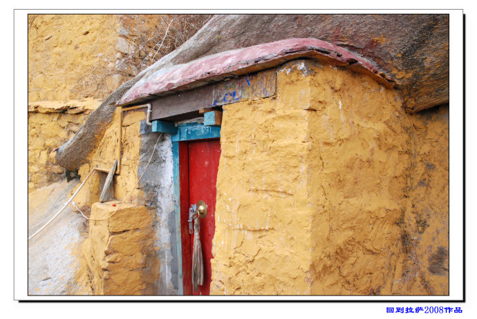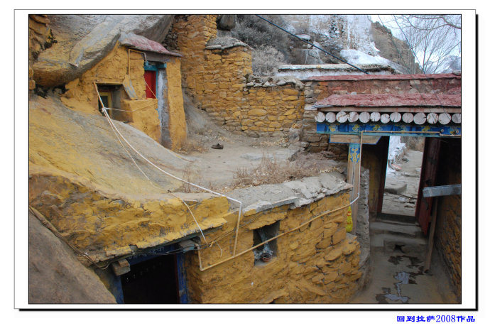 左边挂着门帘的小屋就是宗喀巴大师当年写书的地方