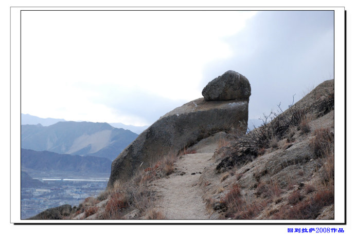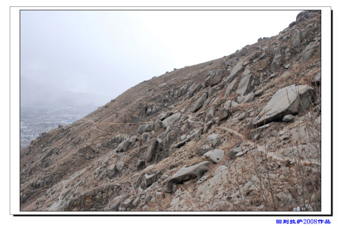 有了他们的陪伴,我们下山的路变得非常的轻松愉快,丝毫没有感到疲惫。直到我们在色拉寺门口分手后,我才突然感到两腿有些沉重,是呀,不知不觉到现在已经上上下下走了快四个小时了,能不累嘛!这时候也才想起,光顾和他们聊天了,还有一个目标没来得及去寻找和发现。在色拉寺附近的山上,有拉萨市的一个天葬台,虽然我们都很好奇,但由于各种原因还从来没有安排专门去探访。今天正好登山,不免也想趁机瞭望一下。据介绍,这台子应该是块平坦、突兀的巨石,我们略微寻找了一下,不知道哪个才是呢?