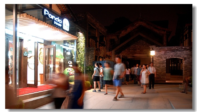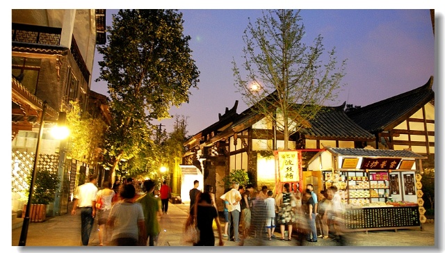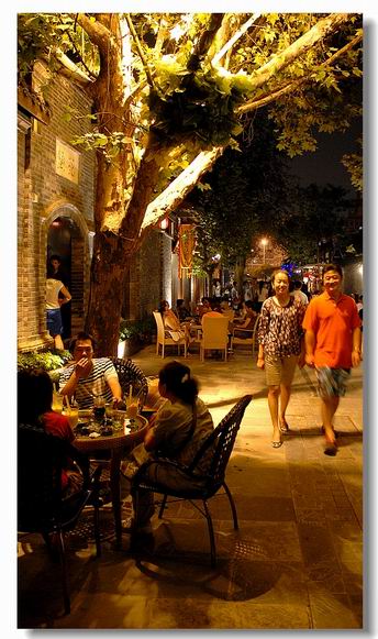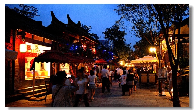去的时候是晚上,天色已暗。行走在重新铺造,闪烁着点点星光的石板路上,巷子两旁的菜馆、酒吧人声鼎沸,觥筹交错中却已没有了往昔的那份幽古之情。历时5年的改造,宽窄巷子在被打造成为再现老成都生活的“原真生活体验馆”之时,其实已经很难寻觅往昔的原汁原味,记忆中的宽窄巷子只能从残存的老墙、门洞、古树中依稀寻觅。
