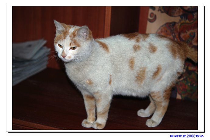 哈哈,原来是一只大花猫居然溜达到了三楼,并寻着灯光前来拜访我了,还不声不响的跳到了书柜上,静静的看着我。要不是我看到她,不知道她还要盯我多久呢!知道我发现了她,这只大花猫立刻像老朋友见面一样忙活了起来。先是里屋、外屋的一通连闻带转,好好把我的办公室参观了一番,然后又跑到我面前把我也检查了一遍,真是一点儿也不见外。见到我拿起了相机,这小家伙也丝毫不紧张,还是有条不紊的继续视察。完成了所有的检查工作,看我还没什么表示,大花猫终于有些不满意了,开始扒拉我的茶叶罐、并使劲冲我大叫起来。我这才想起了,人家来半天了,我连口水都没给倒,确实有些失礼了。可这是办公室呀,啥好吃的也没有呀,翻了半天才找到一块大白兔奶糖,赶快剥好了送到了她的面前,这才算止住了她的抗议。