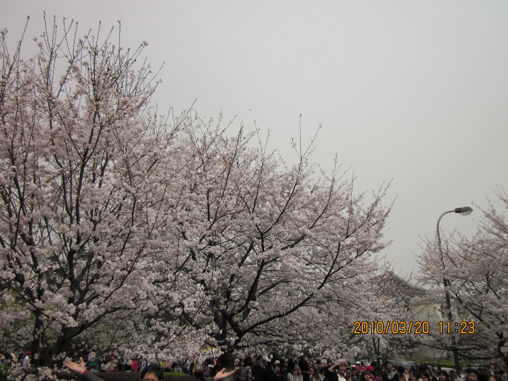 哎,进去看个樱花还要买票,门口看到一个哥们在给他朋友打电话,潇洒的说,我们武大每年光收看樱花的门票就有几百万。那个牛x样啊~ - -!
