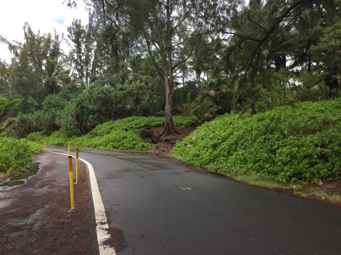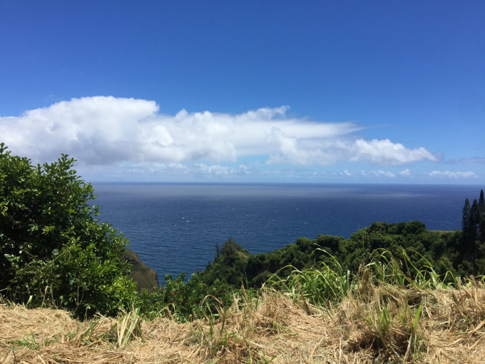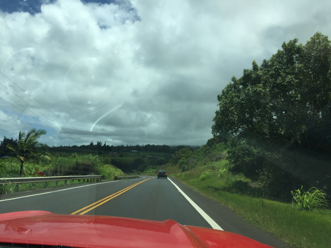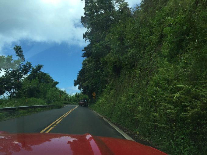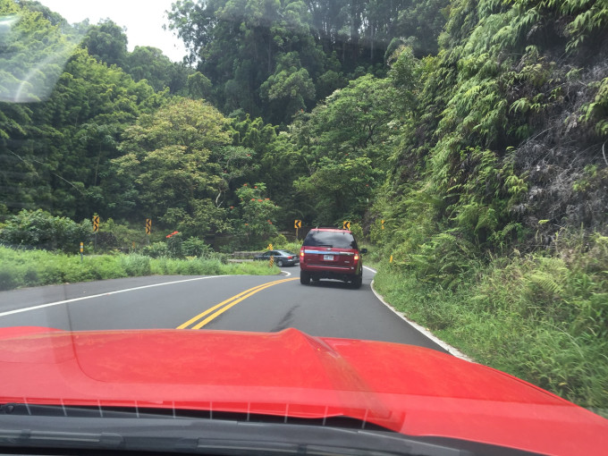 茂宜岛海滩很多,景色秀丽,有著名的基黑海滩、卡纳帕里海滩,拉海纳古镇以及威名远扬的哈纳之路,但是最令我们印象深刻的是从卡胡卢伊到拉海纳80多英里的热带雨林穿越之旅,较之后来的哈那之路更令人震撼和出其不意。如果把茂宜岛比成一个温婉的少妇静静地凝视着大海,那这条路线就是少妇头上五彩斑斓的花冠。它翻山越岭一直在热带雨林、悬崖峭壁以及旖旎海岸风光中穿梭,使人永远期待下一转弯后的神秘和惊艳。盘山路一直很窄,是一上一下两车道,转弯处会车经常会屏住呼吸,手脚冒汗。到了山顶是十几英里的单车道,一上一下一条道,会车时只能用步步惊心来形容了~~好在沿路对路况的警示牌很多,且大家开车都比较注意避让对方车辆,在可能的情况下为对方让行,虽然在山顶偶遇大堵车有两车剐蹭,但也算是有惊无险地到达终点。