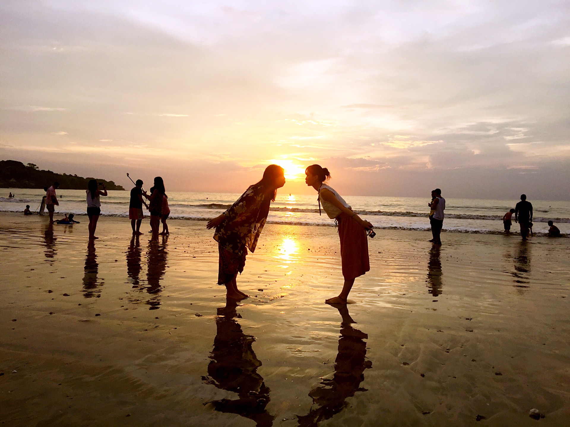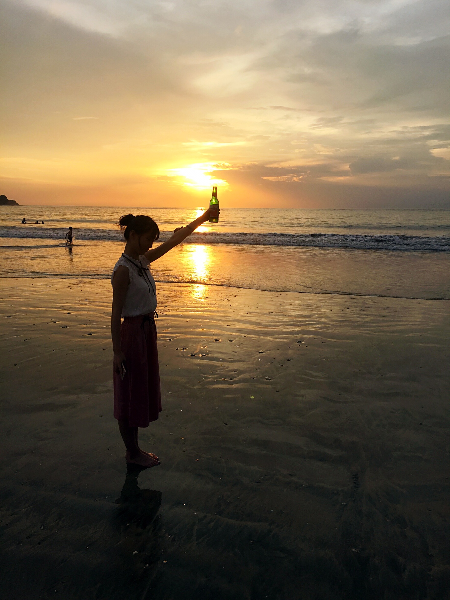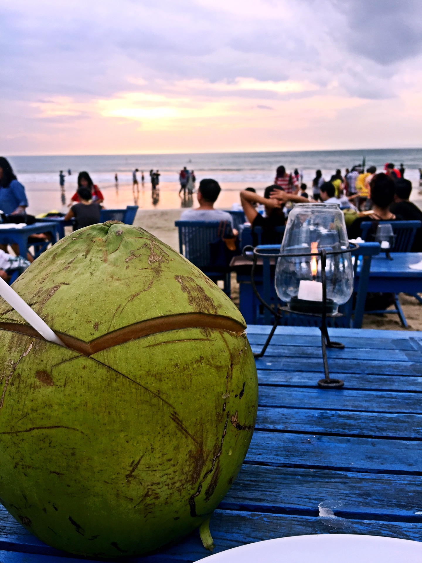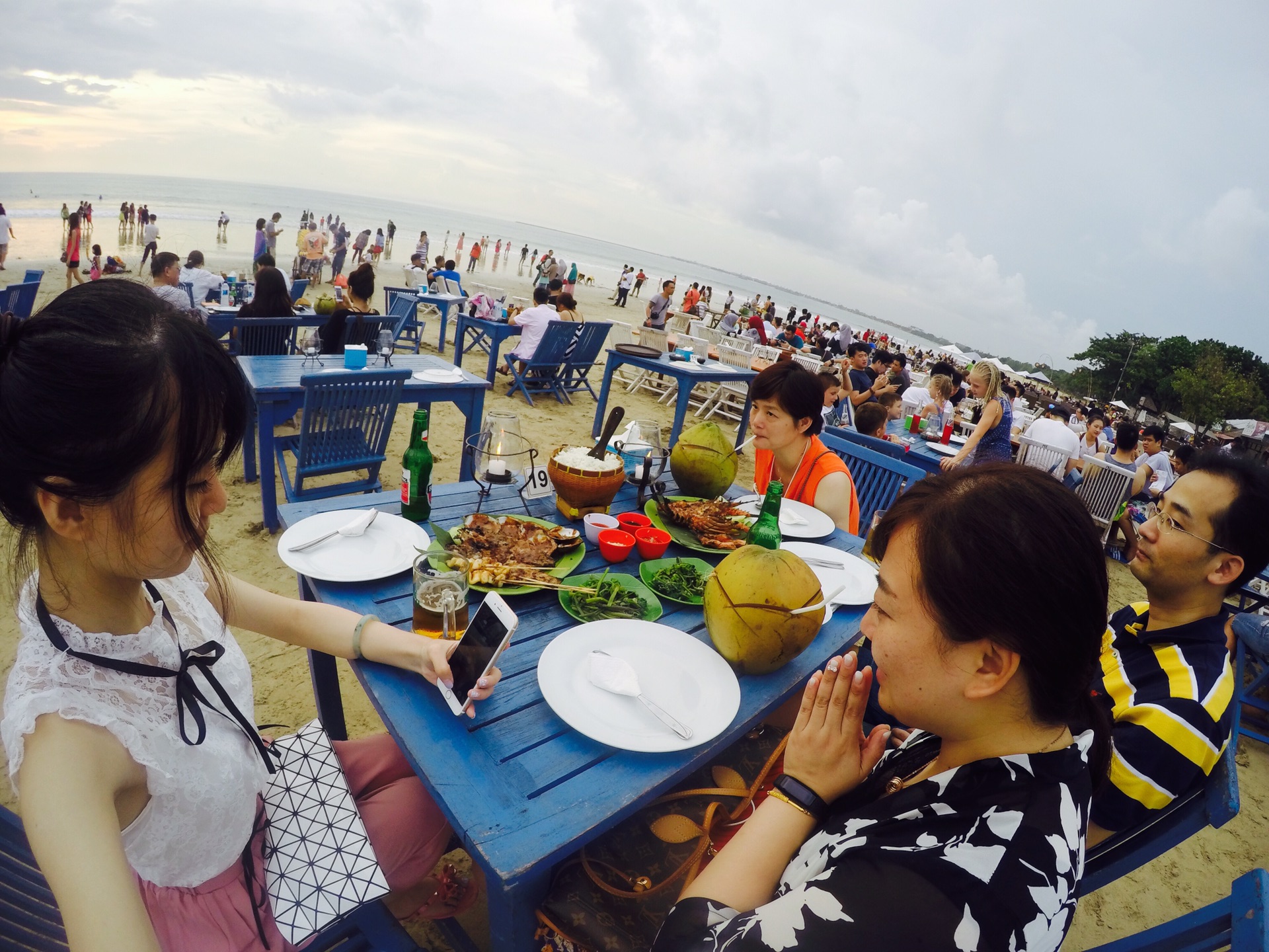 待到傍晚,太阳收敛起刺眼的光芒,一行人来到金巴兰海滩,准备欣赏黄昏的同时饱餐一顿。