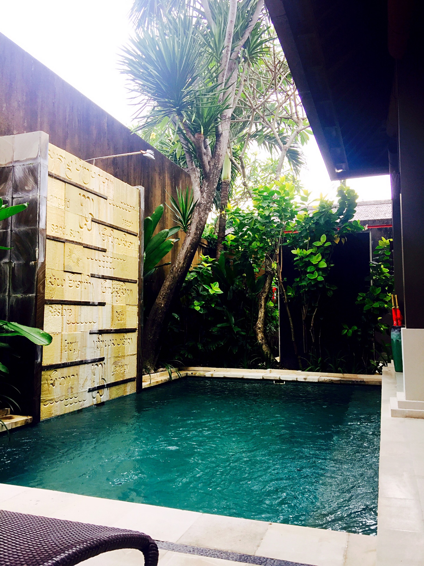 性价比很高的酒店,位于金巴兰海滩,到海滩步行只需2分钟。以villa为主的酒店没有像其他度假村一般有各种设施,但每间房间里都带有私人泳池,房间中厨房、客厅也配备齐全,每天早上会到房间中为客人准备早餐。酒店有免费接机服务,每天傍晚服务员会到房间里来灭蚊,但蚊子还是很多。总体来说还是可以的。