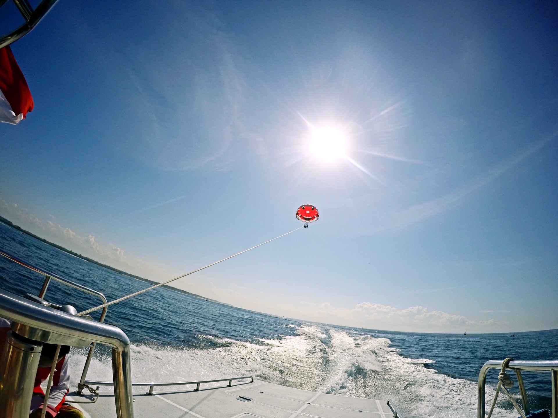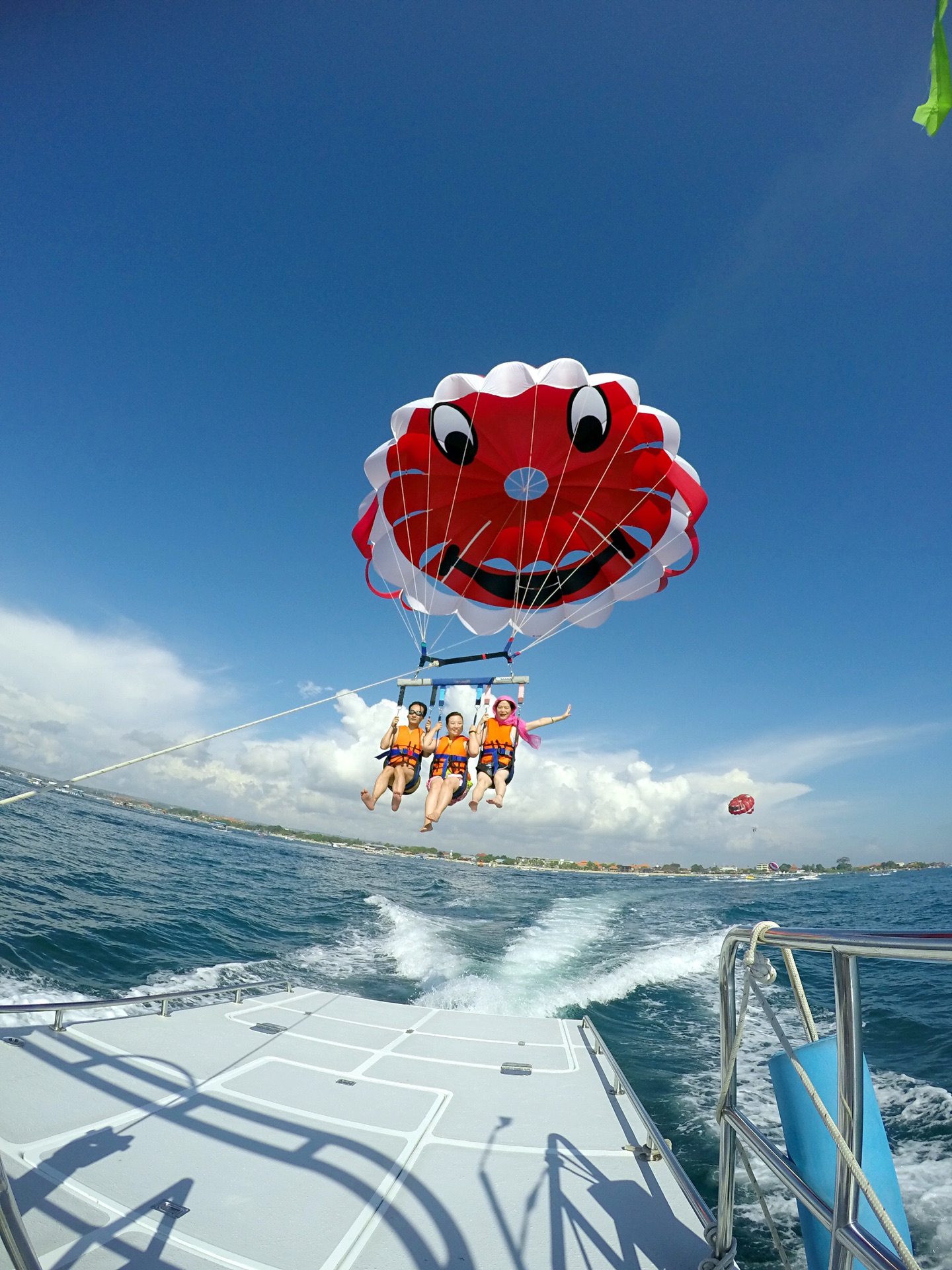 与泰国普吉不同,伞面非常好看,而且是坐着的,像放风筝一样被放上去的感觉很棒,时间也相当长。