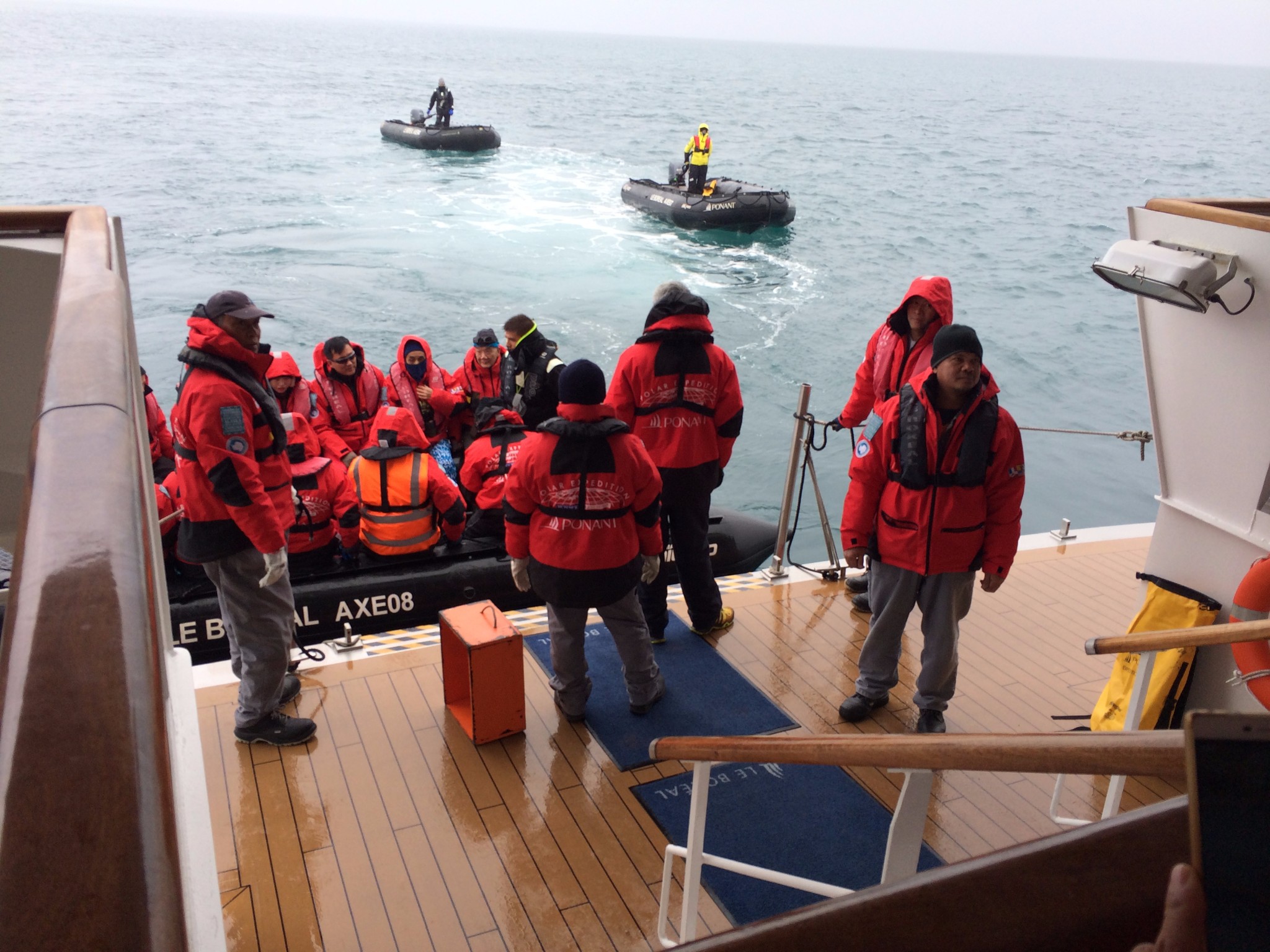 这天上岛时,遇挪威环保官员前来检查监督有无 违规,领队再三