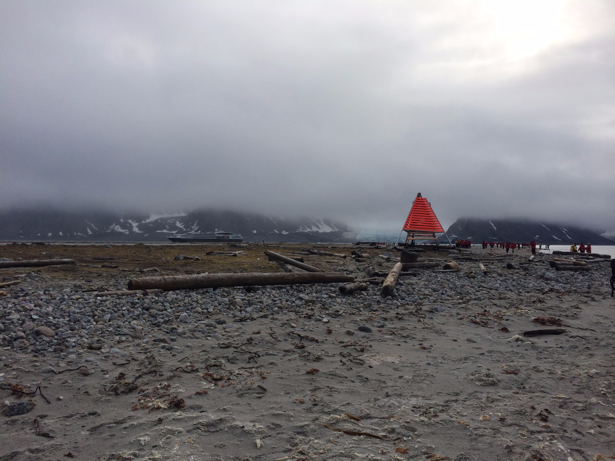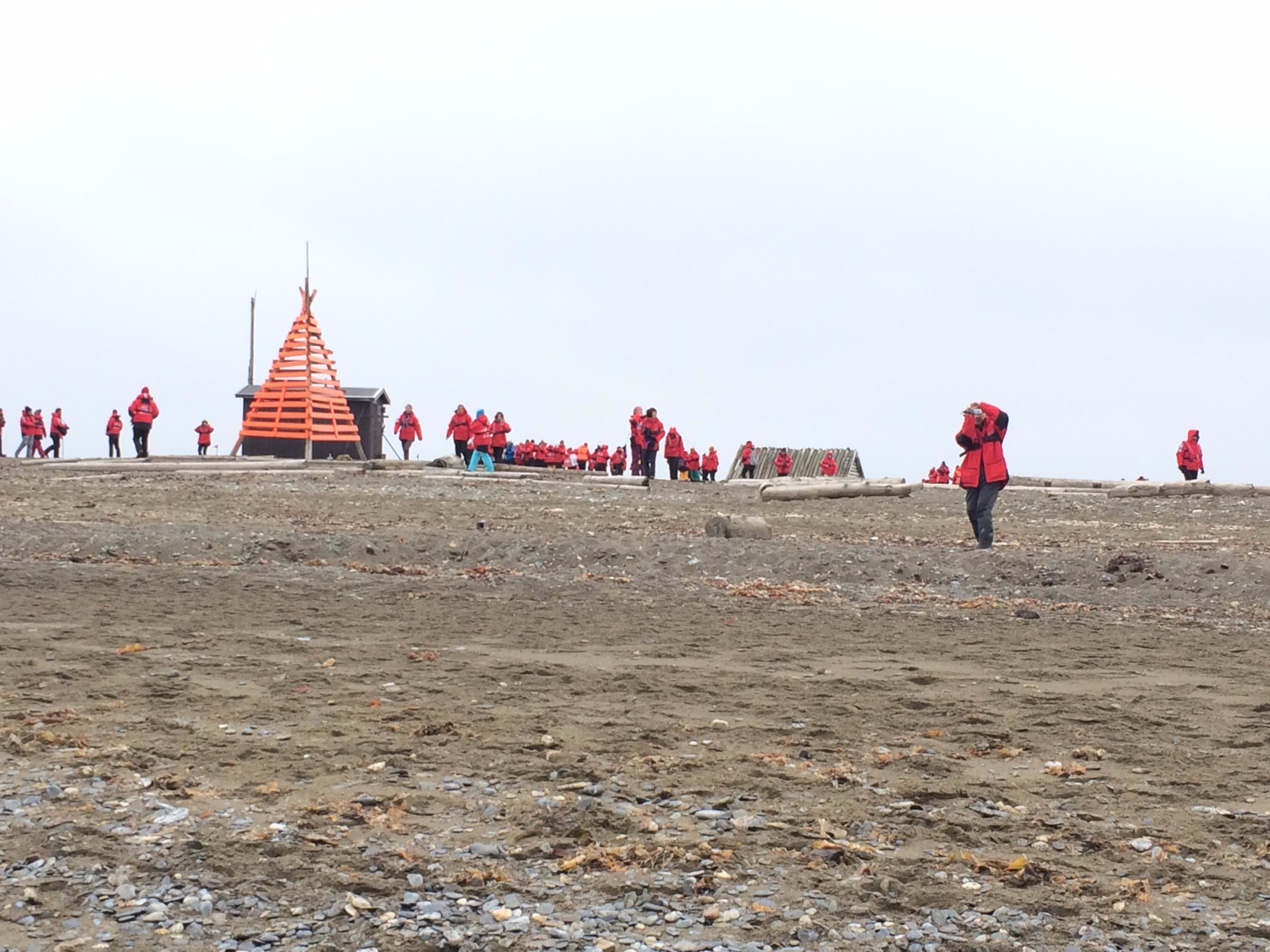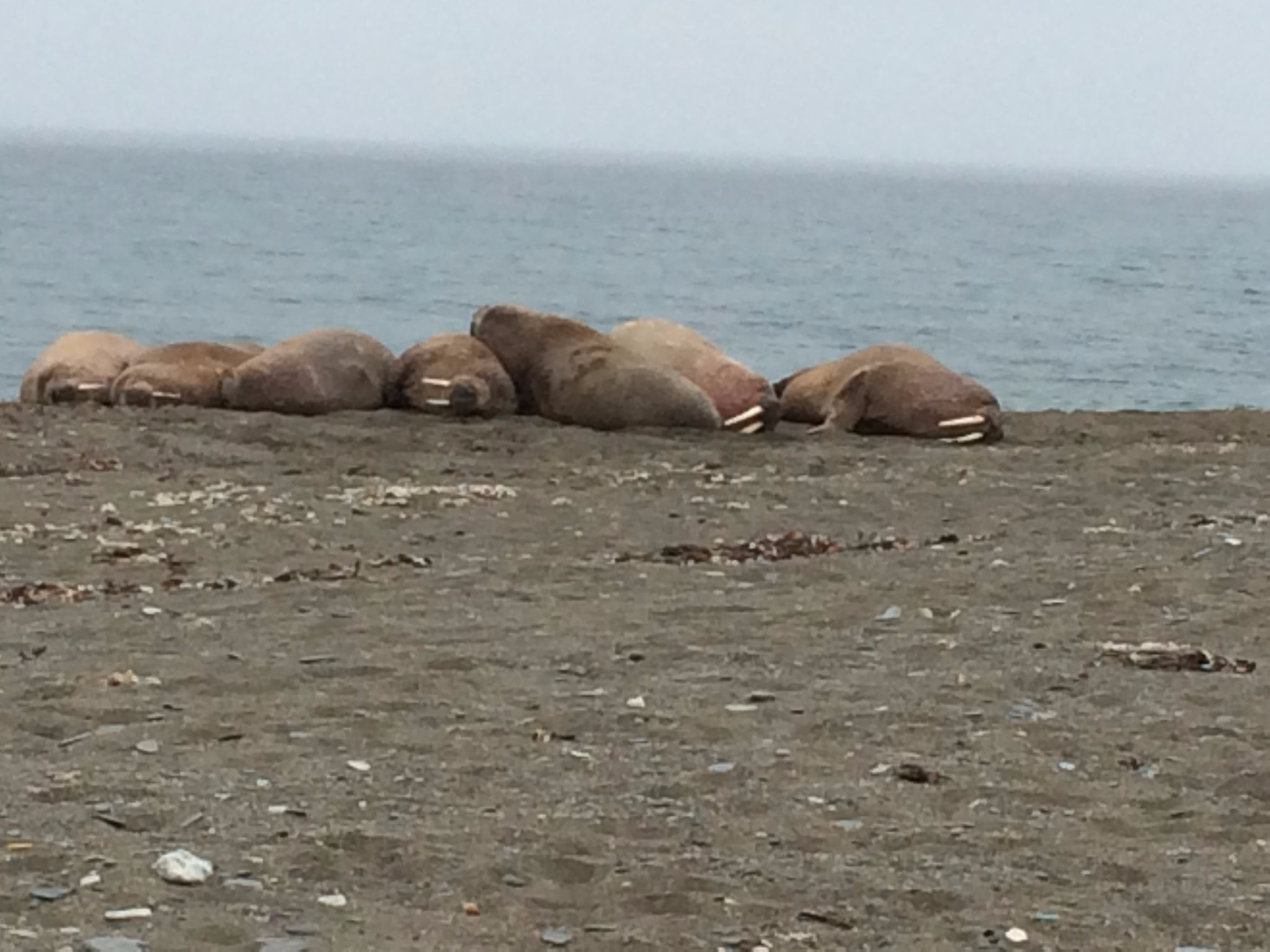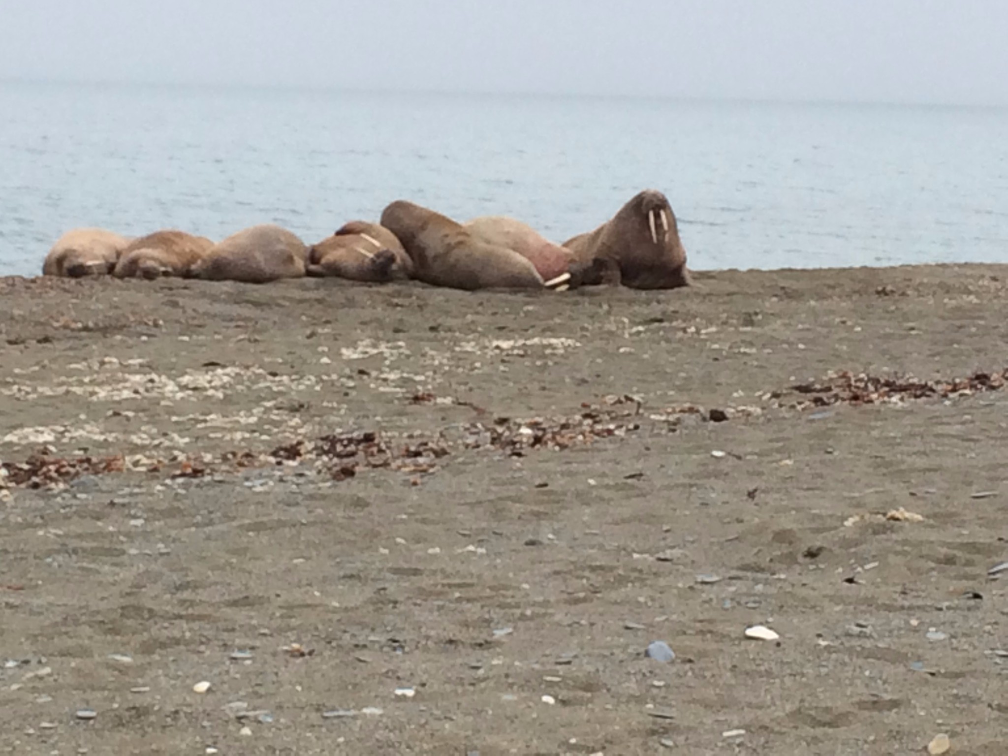 今天是我们第一次登岛,天空下着小雨,冷。很幸运,看见了北极萌叔---海象