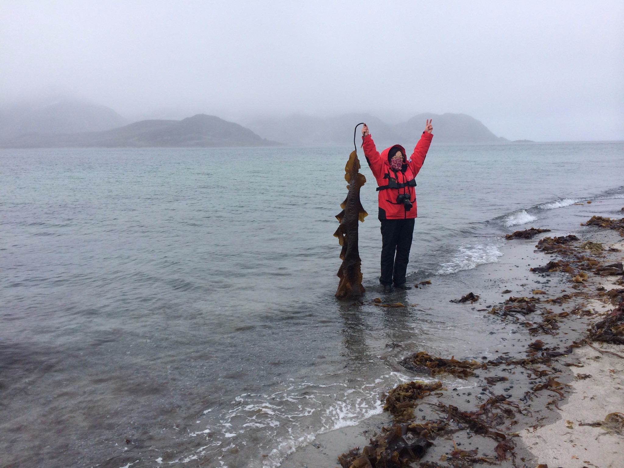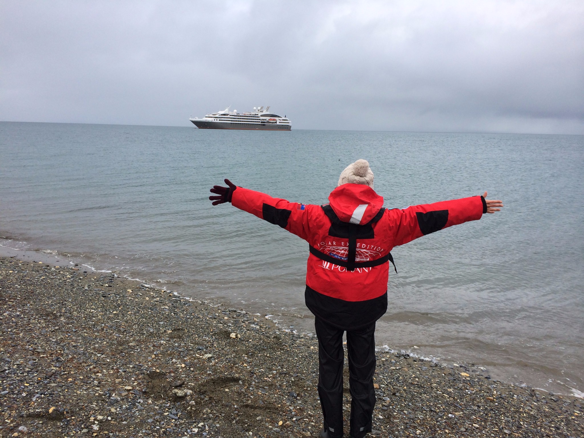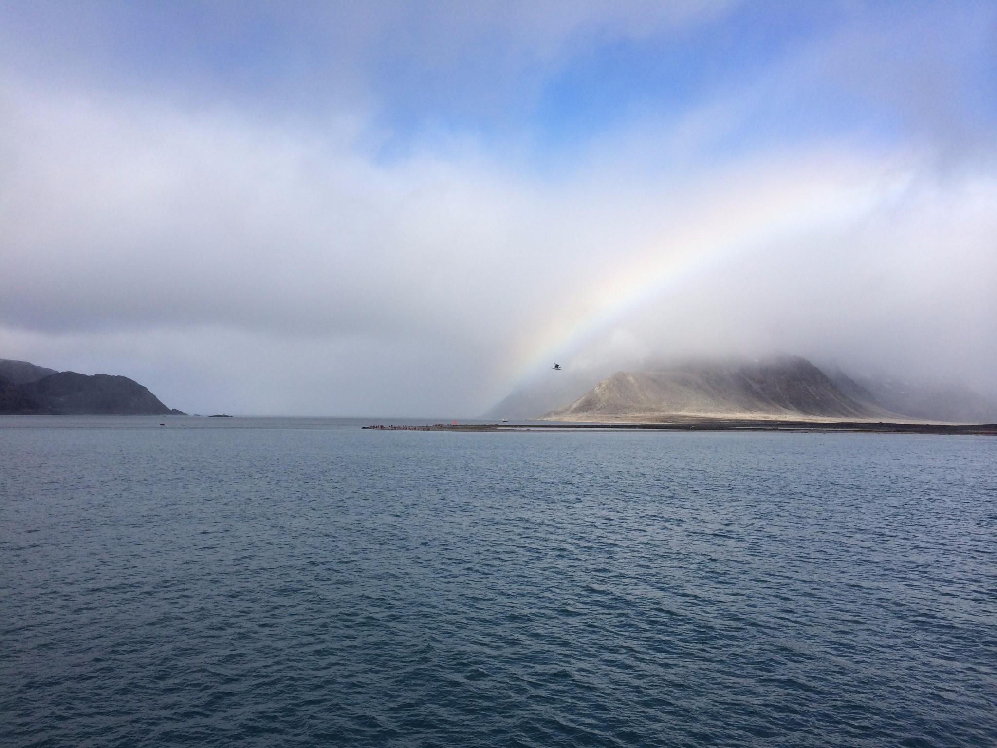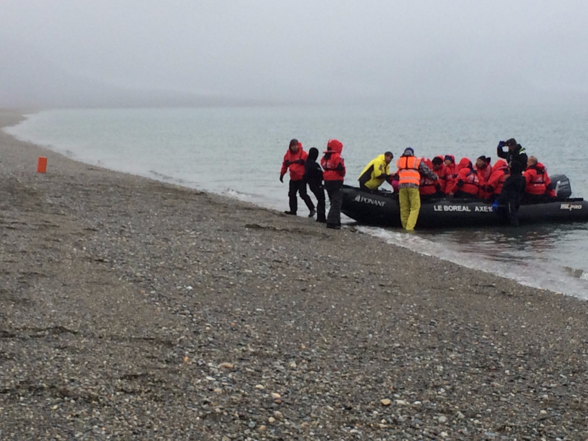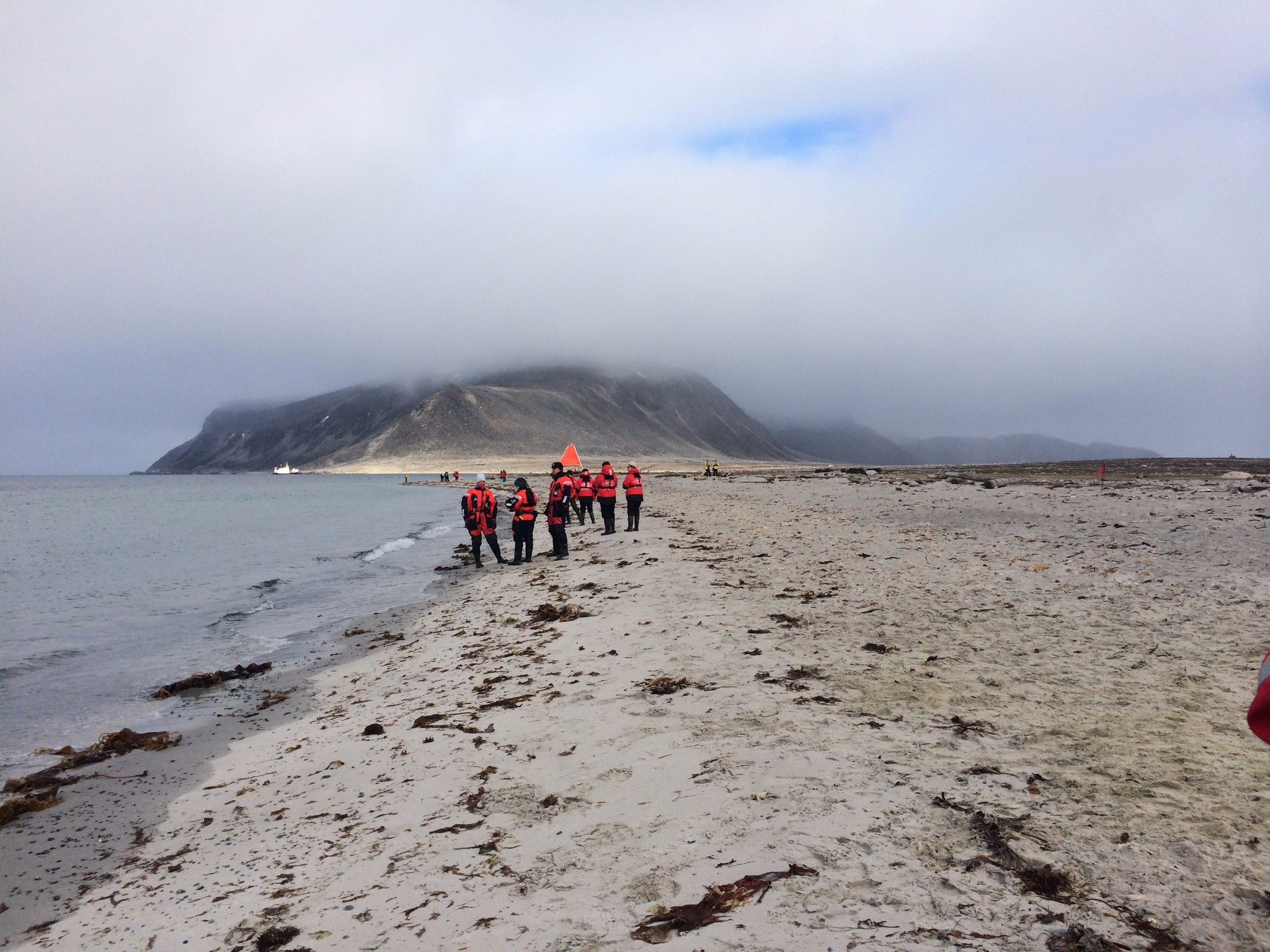 今天是我们第一次登岛,天空下着小雨,冷。很幸运,看见了北极萌叔---海象
