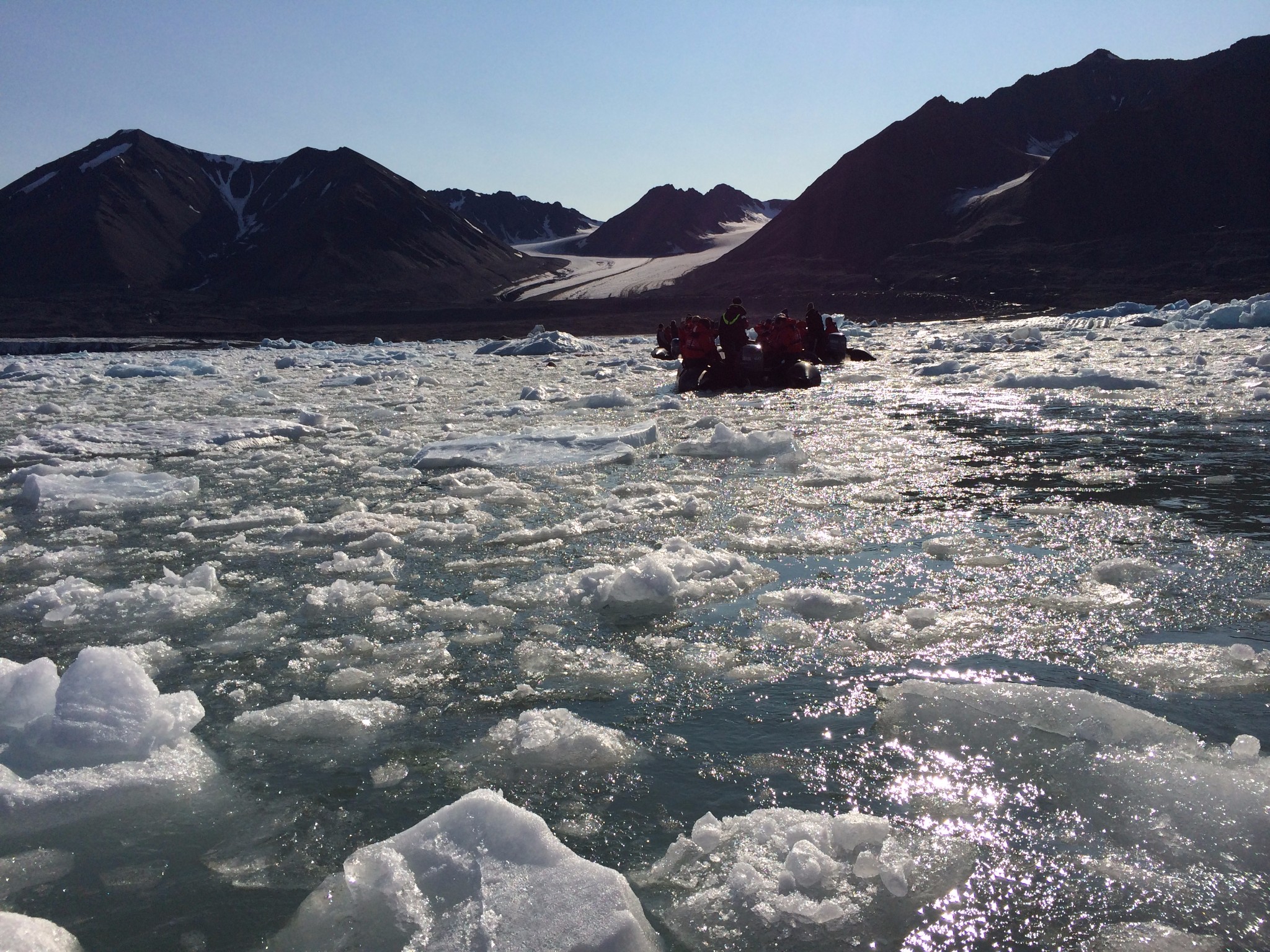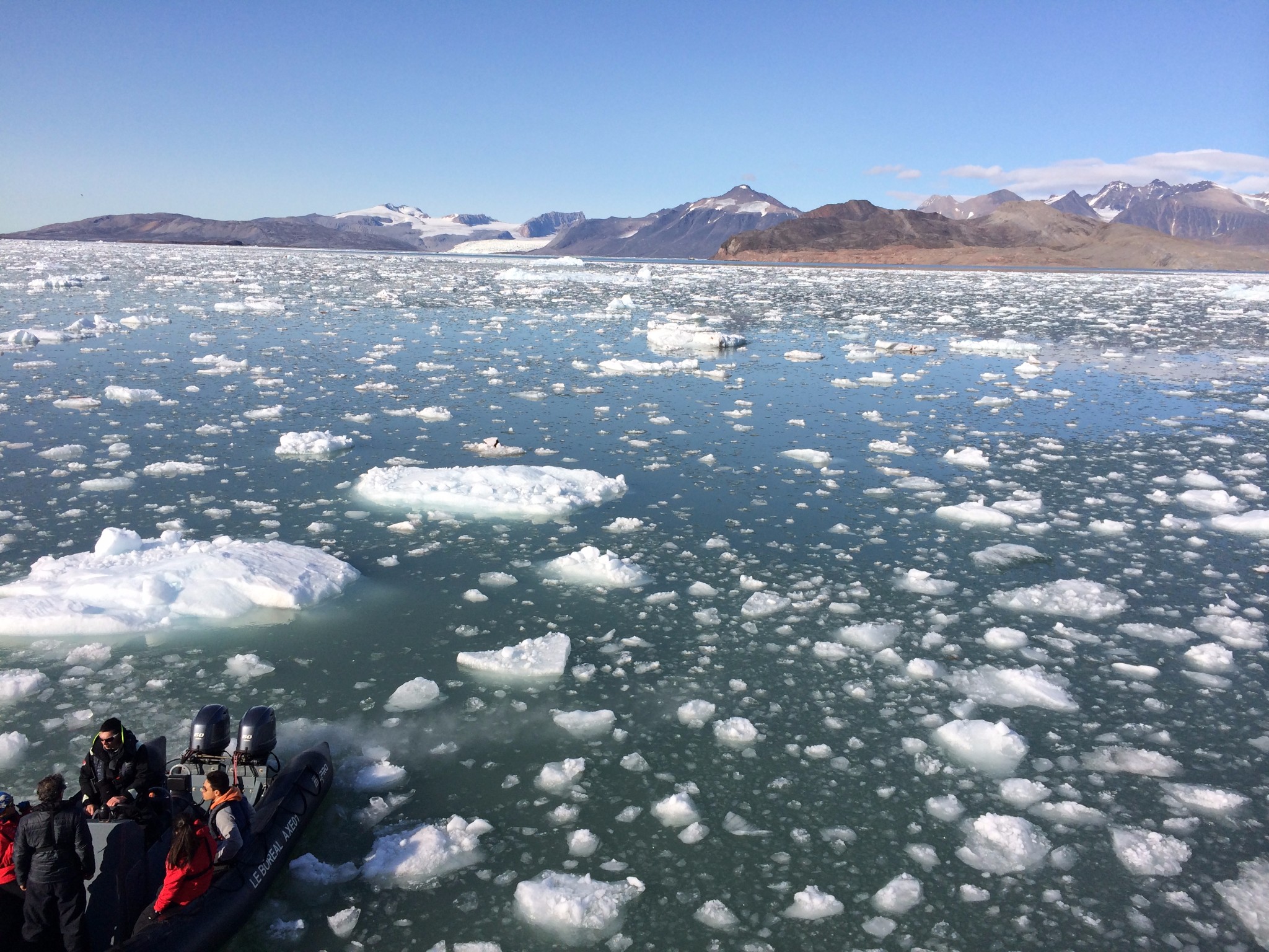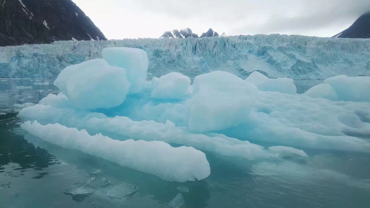 冲锋舟,在浮冰中小心的穿行,碾压冰块咔咔作响,巨大,蓝