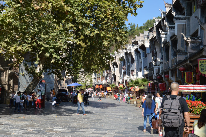 古镇大街入口有保安把守,不让车辆往里开,说是景区已经爆满。于是紧急联系了民宿的老板,通过短暂沟通,保安放行了我们的车顺利进入了古镇。3点左右入住了我提前订好的民宿。短暂休息后,我们到古镇上晃荡晃荡了一圈,发现下午镇上人出乎意料地非常少,我们还以为我们找对了偏门景点。结果.....事实证明是我们太天真。。。。