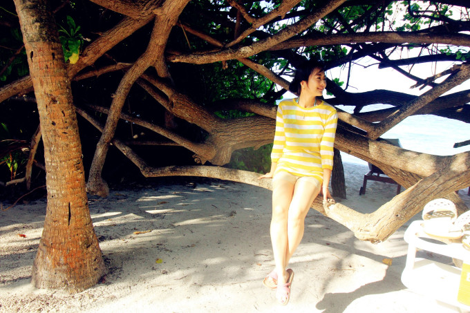 清晨,走出房间,阳光格外的刺眼,眼前的一切都那么明媚,走了不到10步,就到了海边,碧蓝的海水通透无比,白色的沙滩,细腻的白沙像奶油一样,踩上去太舒服了
