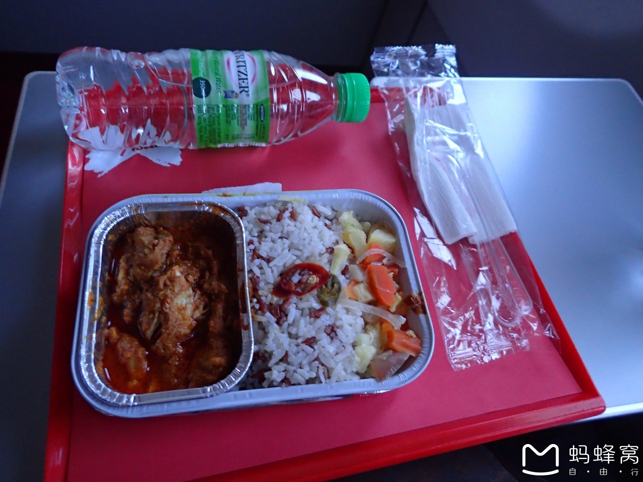 ,由于以前没有坐过亚航,也不知道什么好吃,这次正好2人出行,就点了2种,一种是搭冈饭与咖喱鸡,一种是丰盛大早餐。看到实物和品尝过后,我觉得要推荐的是丰盛大早餐,早上吃的话没有油腻的感觉,而且品种比较丰富。