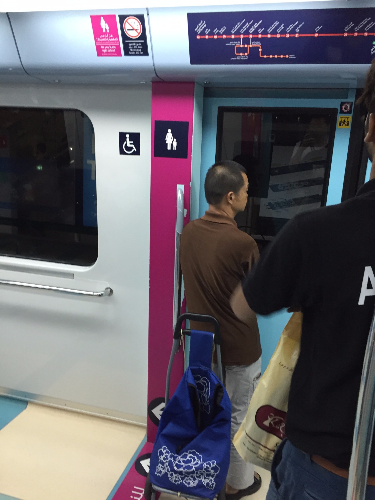 听说地铁是中国人建造的,感觉不管是外形还是内部设施都很新,全部都是全封闭式,第一节是黄金卡,估计当地的土豪专用