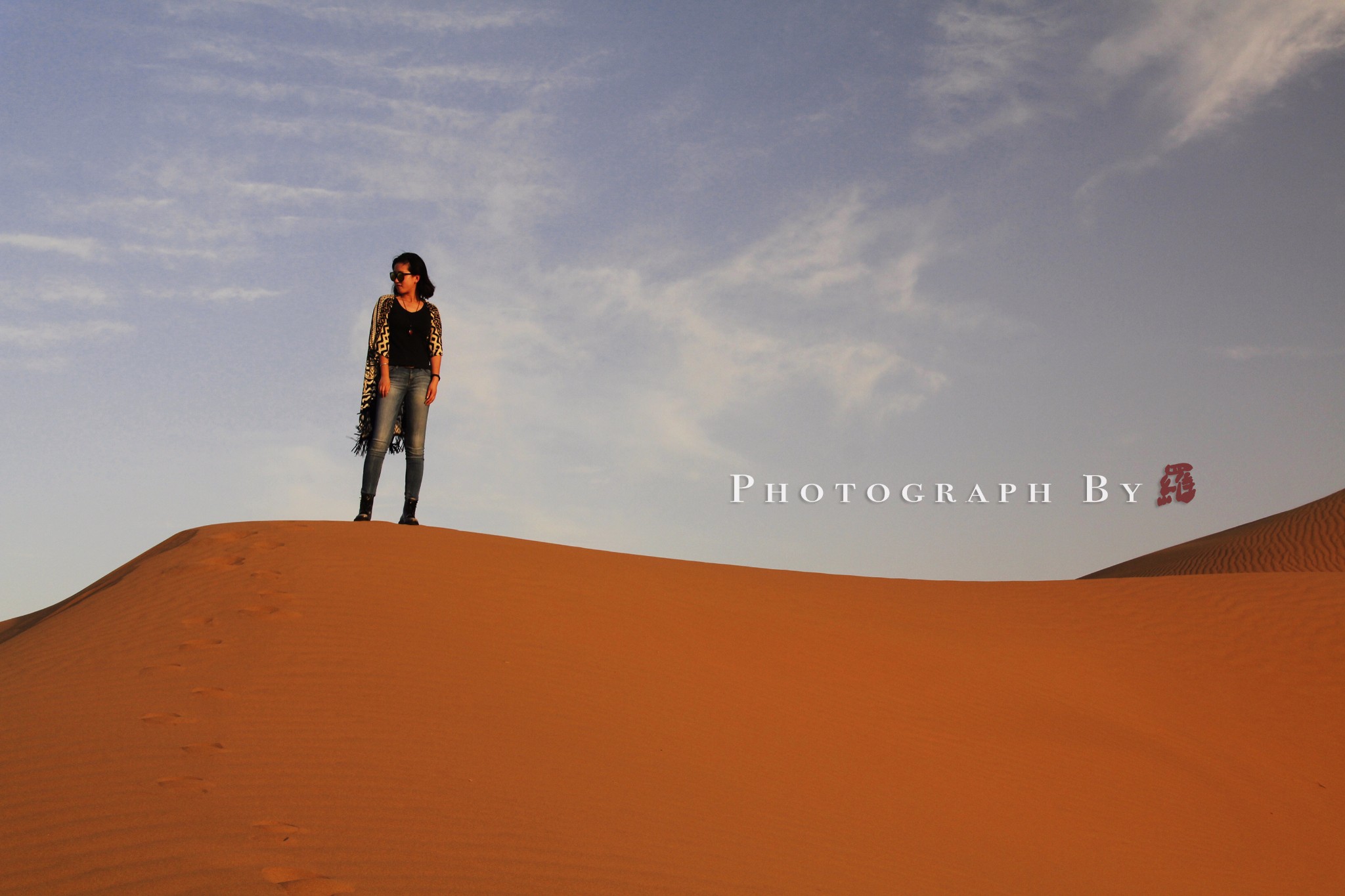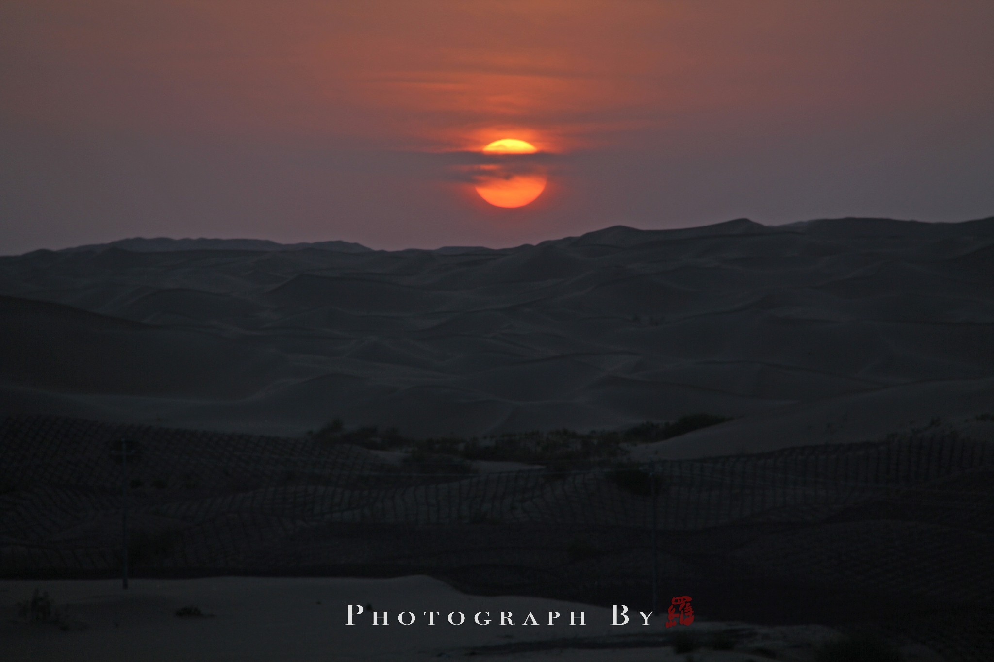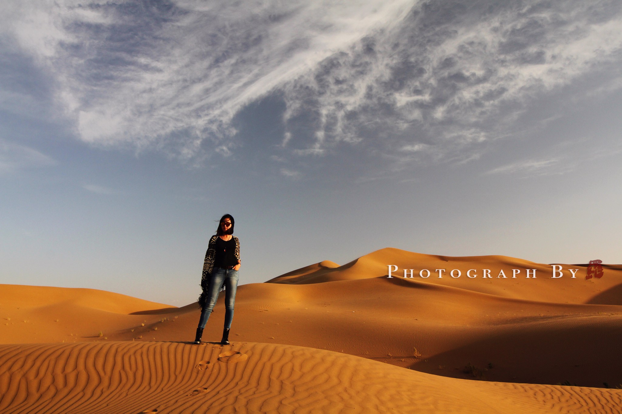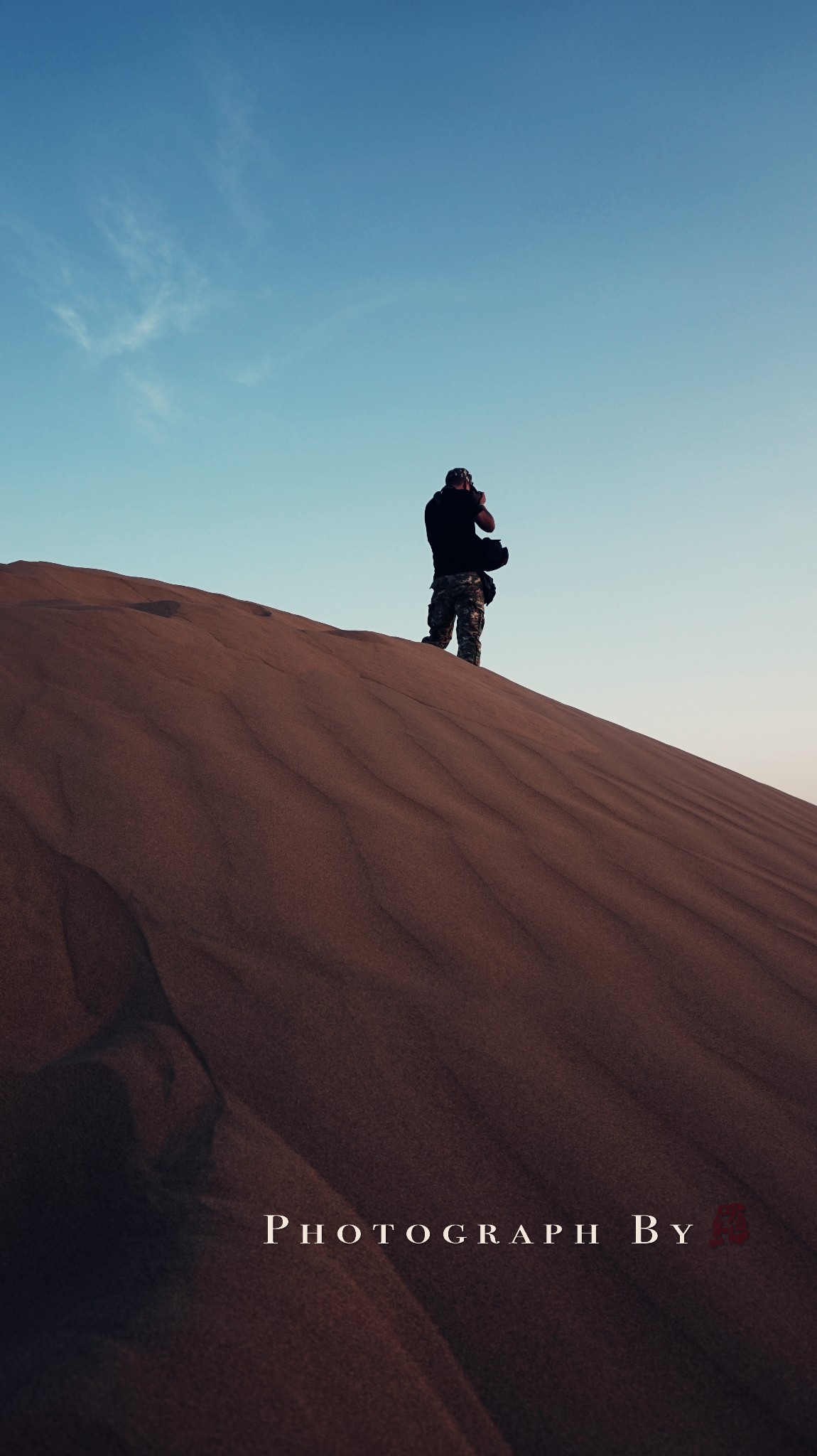 看库布齐沙漠尽量不去那些开发好的景区,推荐线路就是在沿黄公路行驶100多公里的地方下道有个穿沙公路215省道,不用开多远就可以走进沙漠拍摄沙漠大片了。我们到的时候大概下午5点半,等待日落。