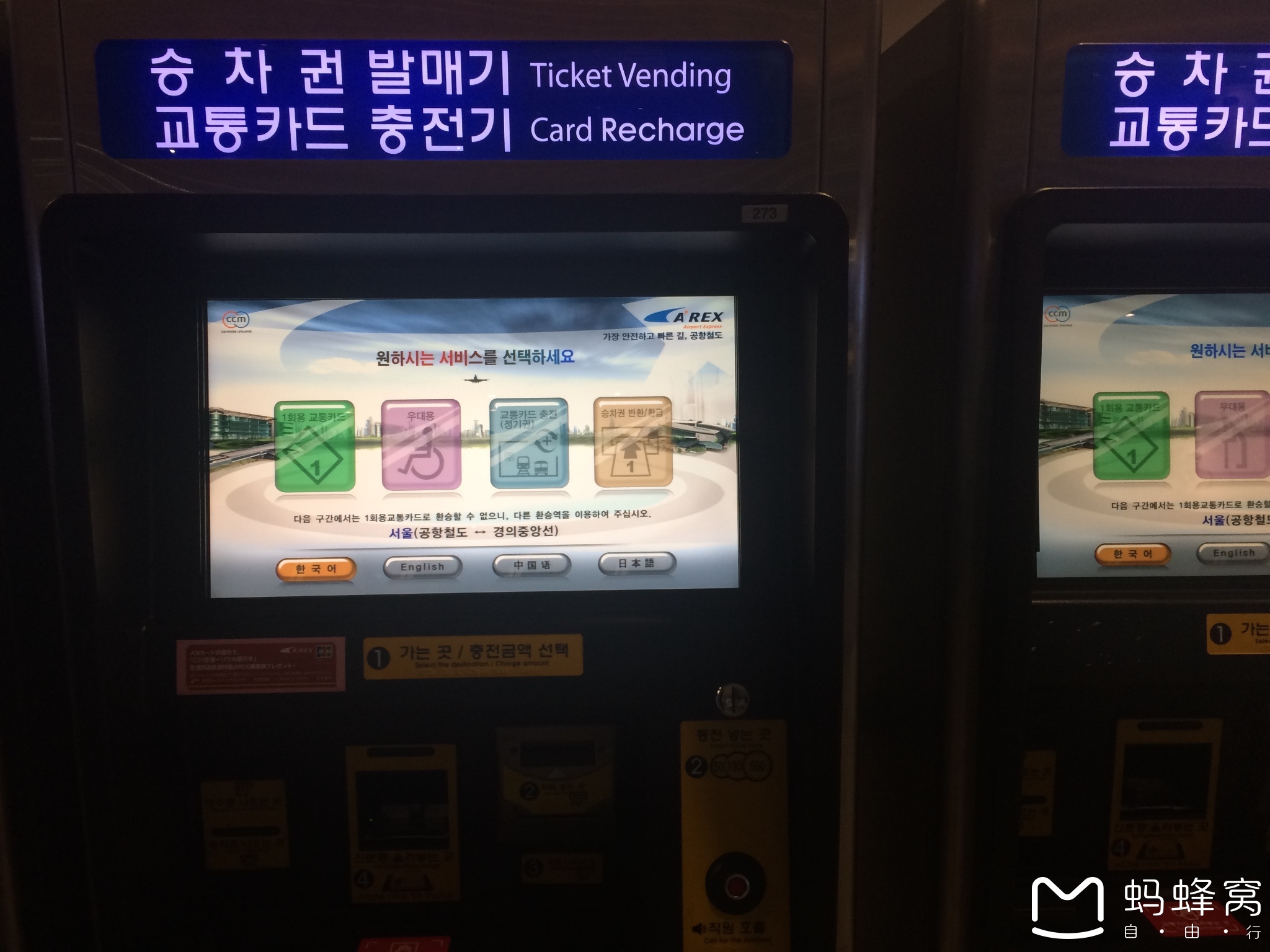 出机场有好多种方式,我选择坐地铁。充值T-money直接在地铁售票机就能操作,有中文
