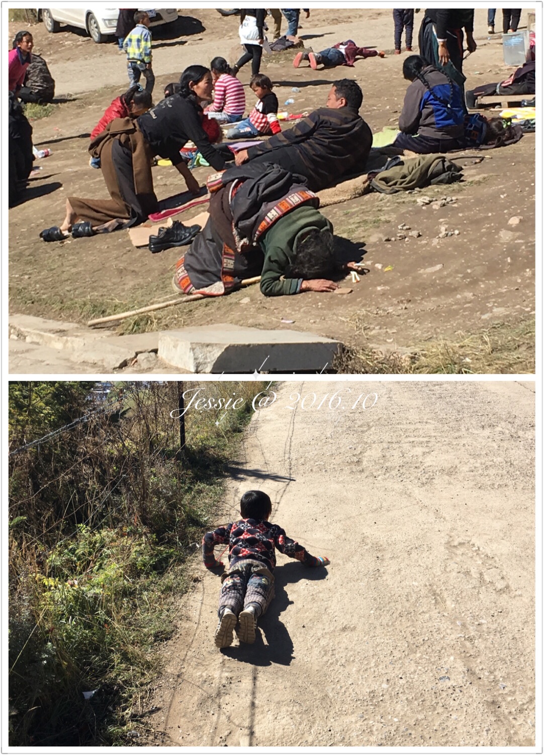 男女老少,都尽自己的全力磕着等身长头,老奶奶驼背,实在下不去了,也尽力行礼
