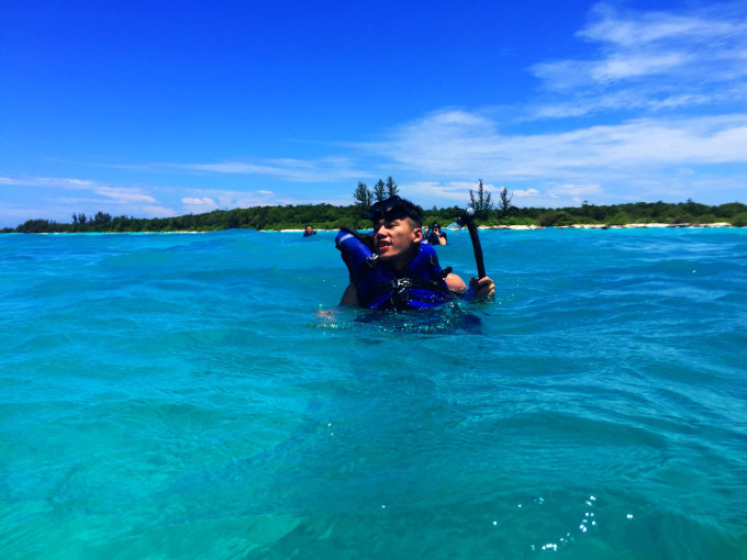 出海浮潜,专门带了防水手机套,然后准备潜下去拍照的时候。手机没电了,呵呵。