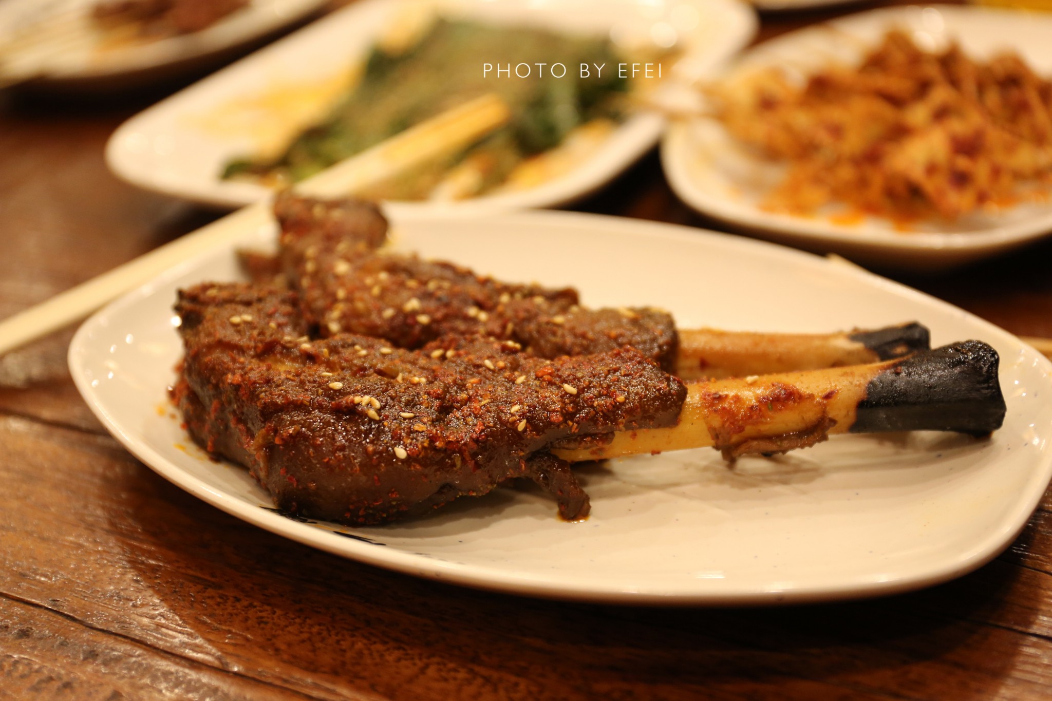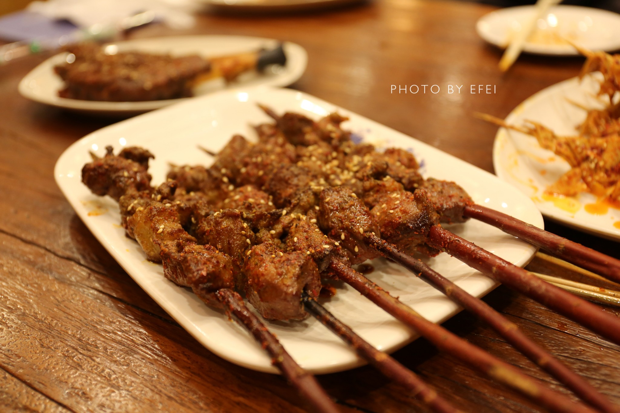 给我印象最深的就是羊肉串,沙葱和烤馍。